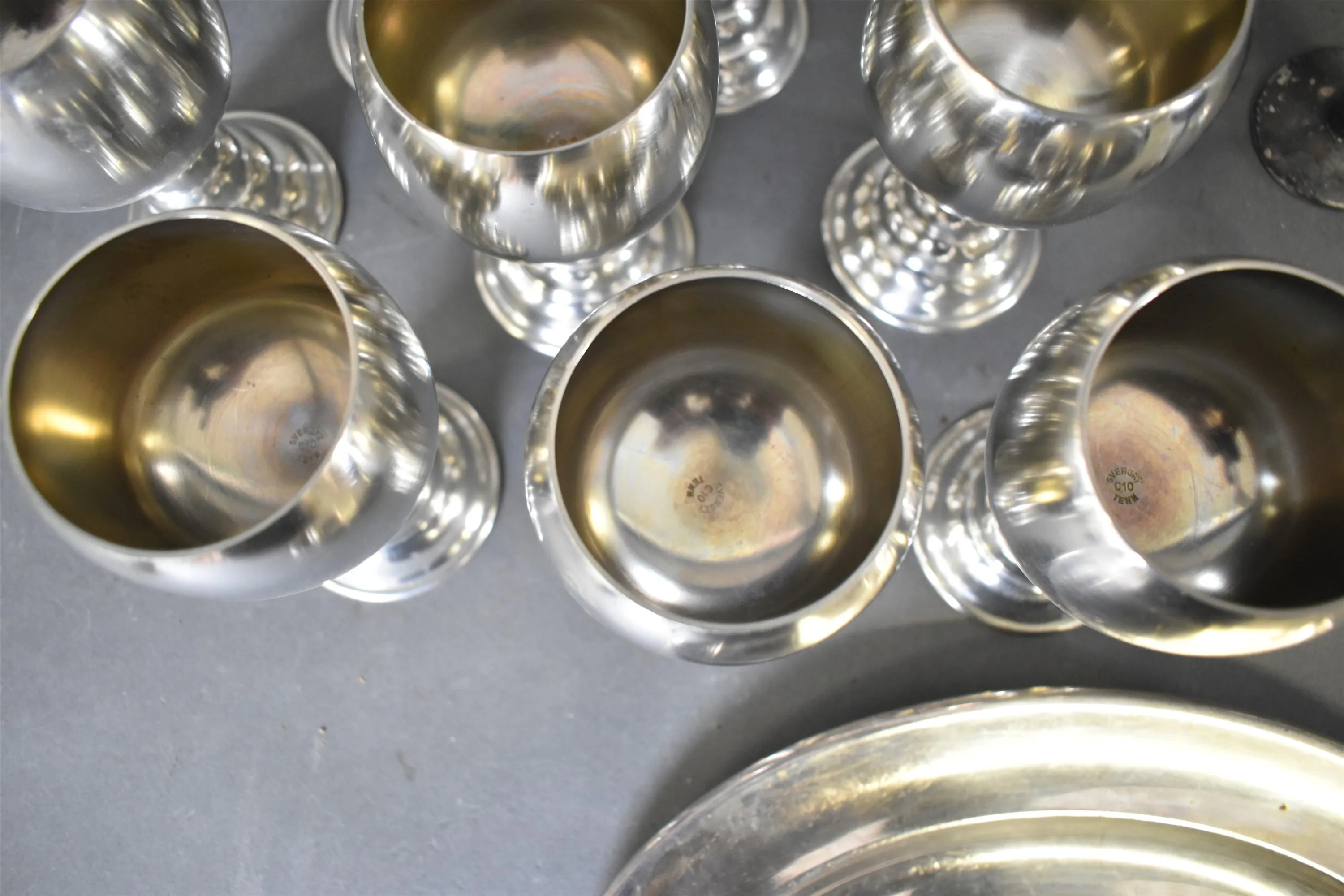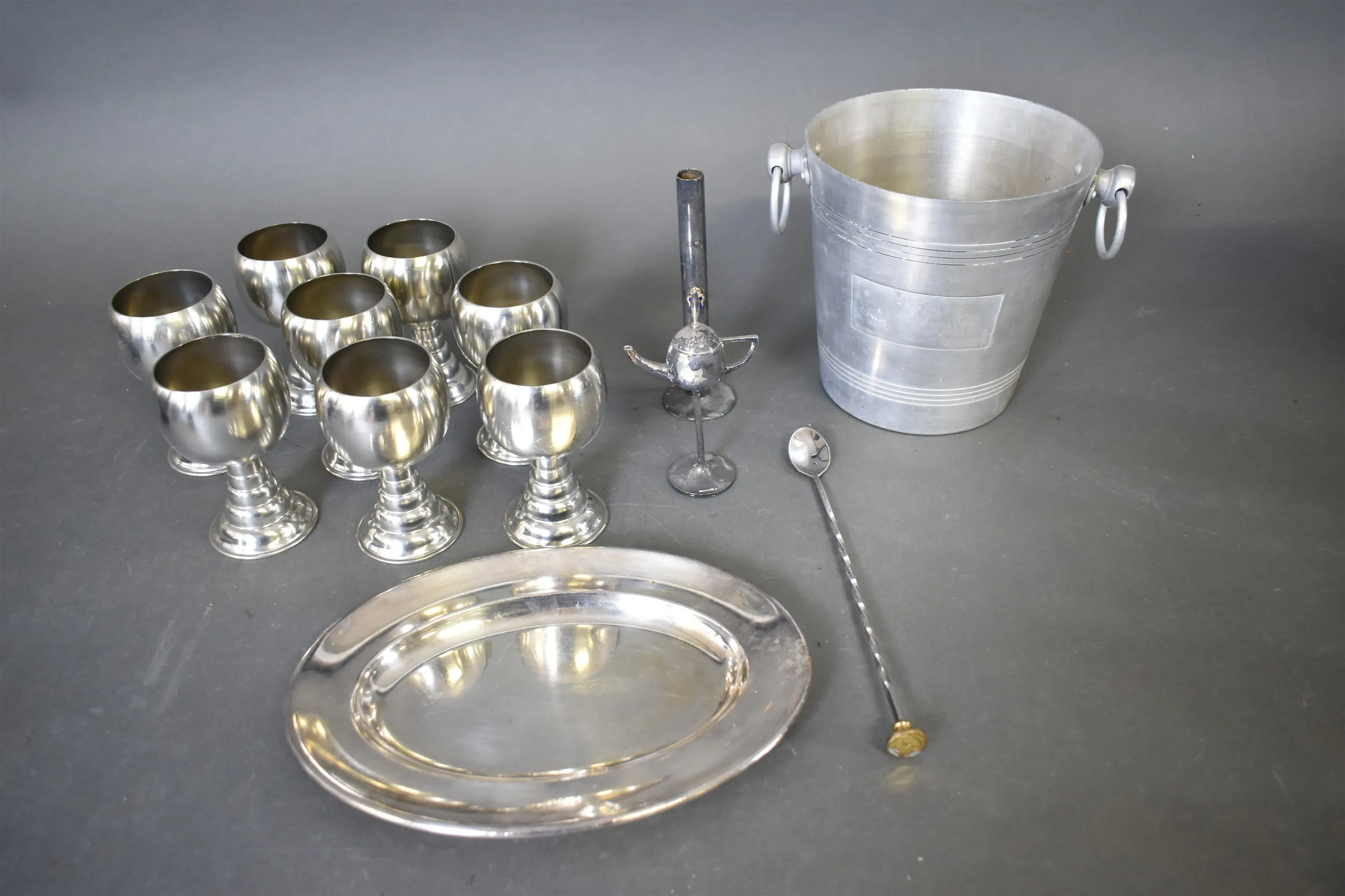 10481. Parti metall bl.a tennbägare, & ishink, högsta 20 cm