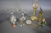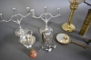 15812. Parti metall bl.a Tennljusstakar och bordslykta Karlskrona, högsta höjd 33 cm