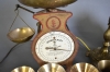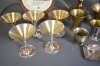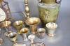 11643. Parti metall bla bordslampa mässing, våg Jernbolaget Eskilstuna och bägare, högsta höjd 50 cm