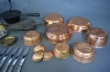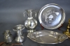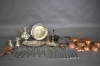 1139. Parti metall bla kopparformar, tennljusstakar och rostfria bestick, högsta höjd på bild 36 cm