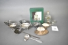1002. Parti metall bla nysilver och glasflaska med tillhörande glas Holmegaard "Julflaska" Danmark, högsta höjd 25 cm
