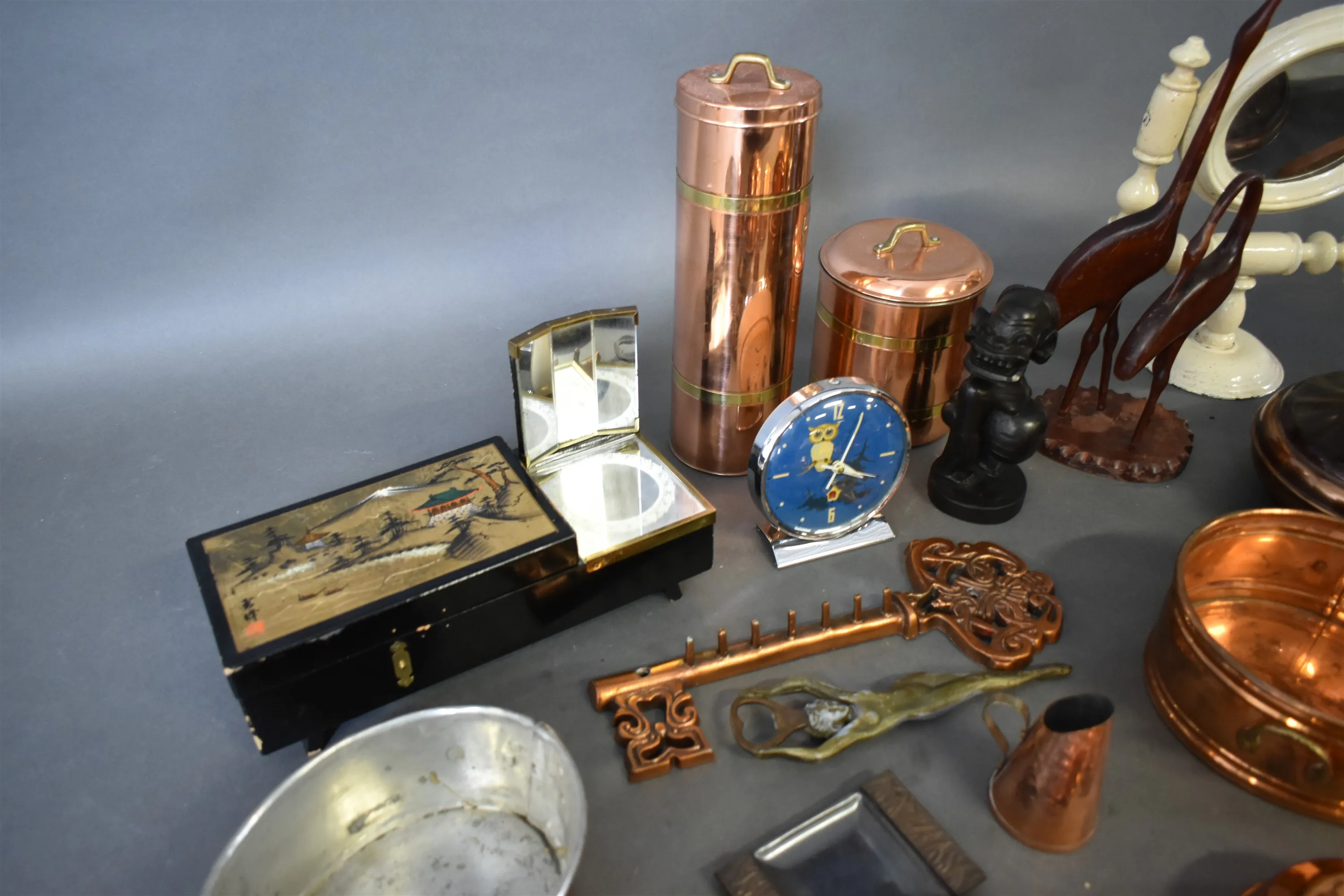 16036. Parti metall, kutting & bordsspegel, högsta 30 cm