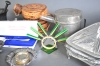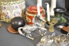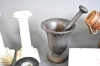 11377. Parti metall och diverse bla senapskula, kaffepumpor och mortel med pistill gjutgods, högsta höjd 22 cm