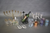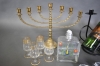 7203. Parti metall och glas bla titusljusstake mässing och vas Orrefors, högsta höjd 30 cm