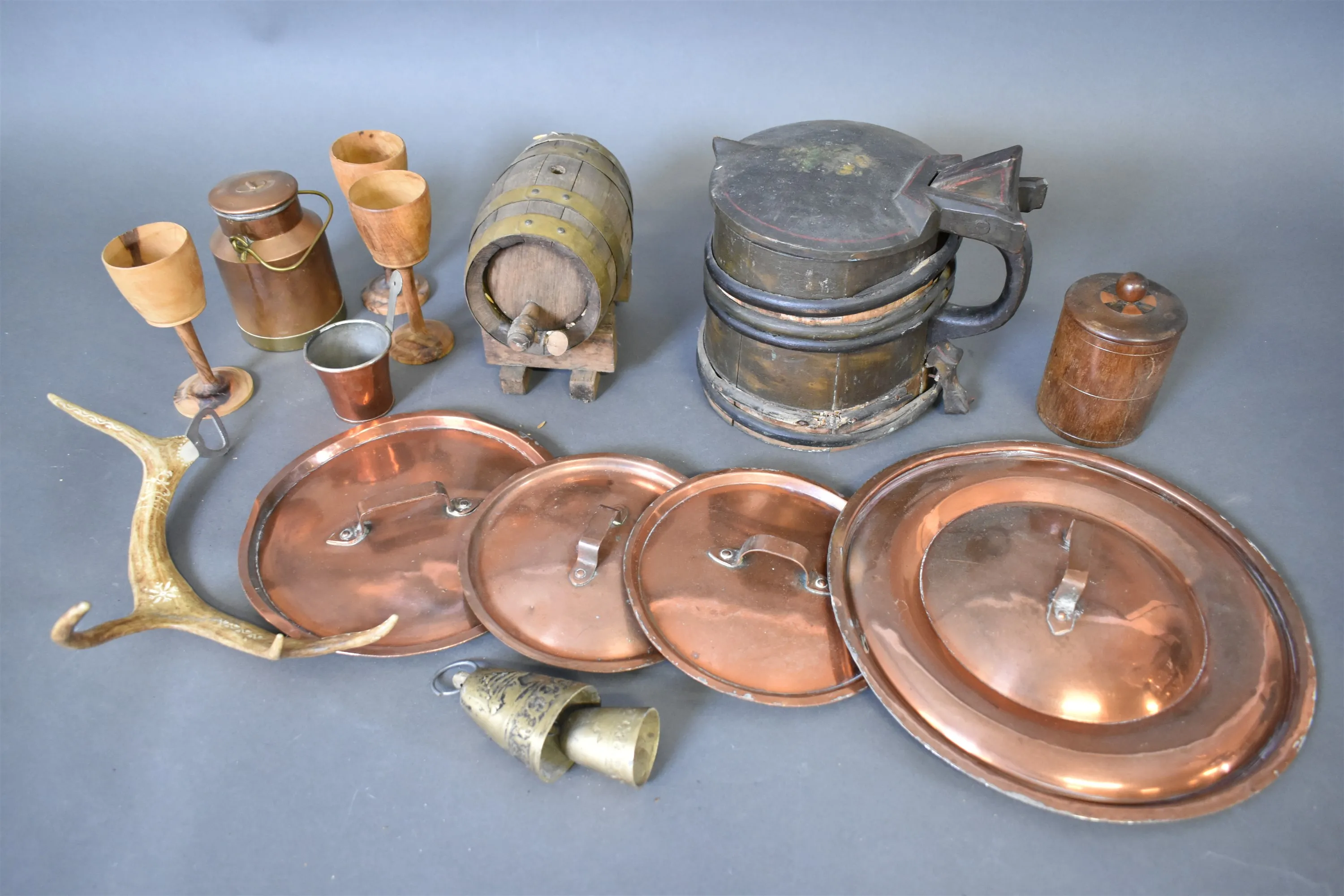 12447. Parti metall/trä bl.a stop allmoge defekter finns högsta 25 cm