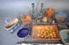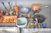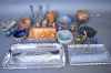11541. Parti, metall/trä, bl.a serveringsbrickor, korgar, längsta 47 cm