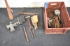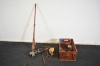 1796. Parti metallförmål & blåsintrument, bl.a betplockare, & köttkvarn, längsta 132 cm