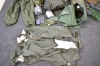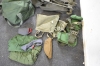 5628. Parti militärkläder med väskor & hjälmar, största kläd mått 170 cm 2 ställ, varav 1 regnställ