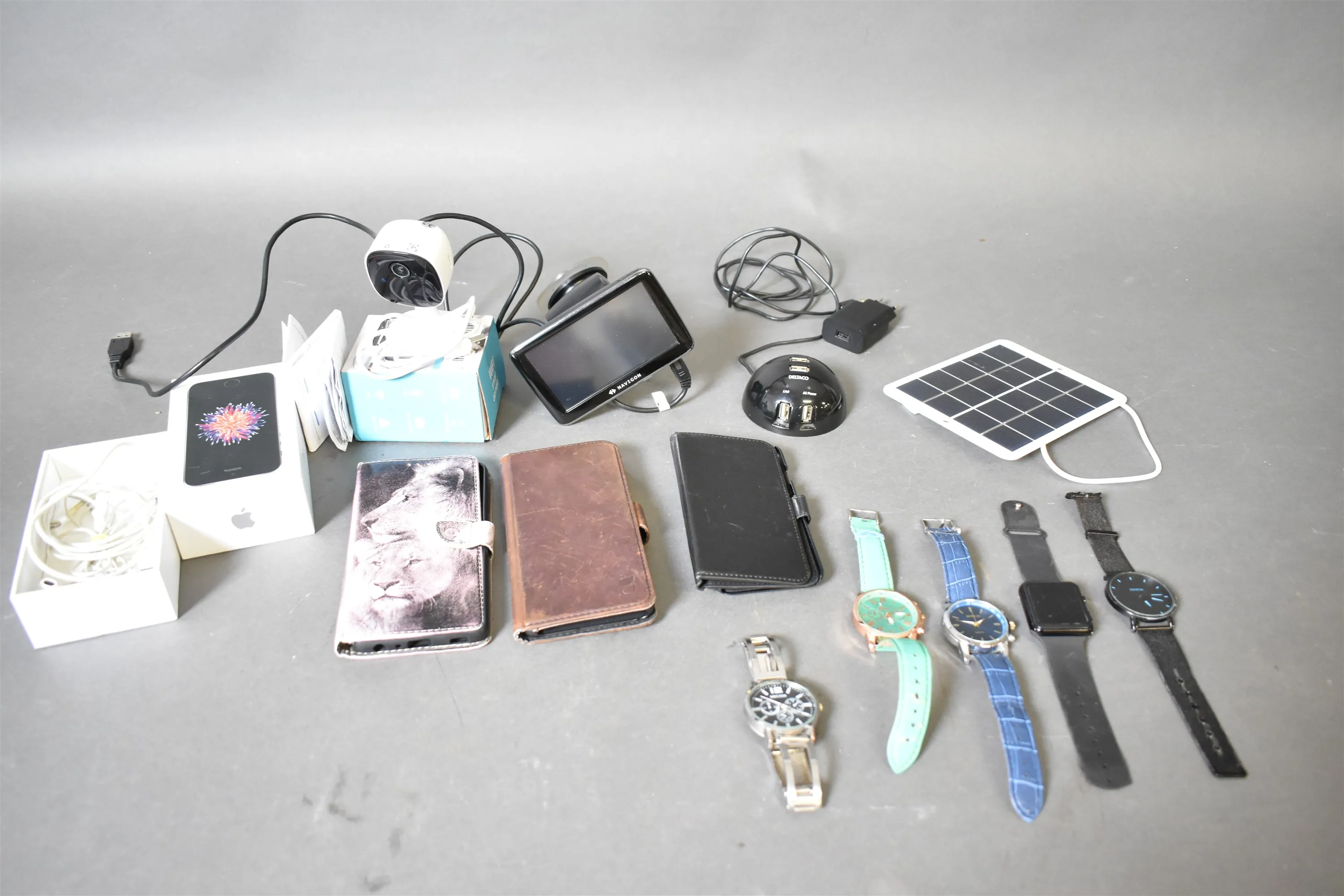 15729. Parti mobil- och tekniktillbehör bla mobilfodral och navigationssystem