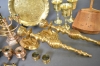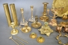 9956. Parti mässing bla ljusstakar och bägare, högsta höjd på bild 28 cm