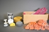 12008. Parti naturbast för blomsterarrangemang, dekorationsrosetter och keramik, längd på bastlåda 76 cm