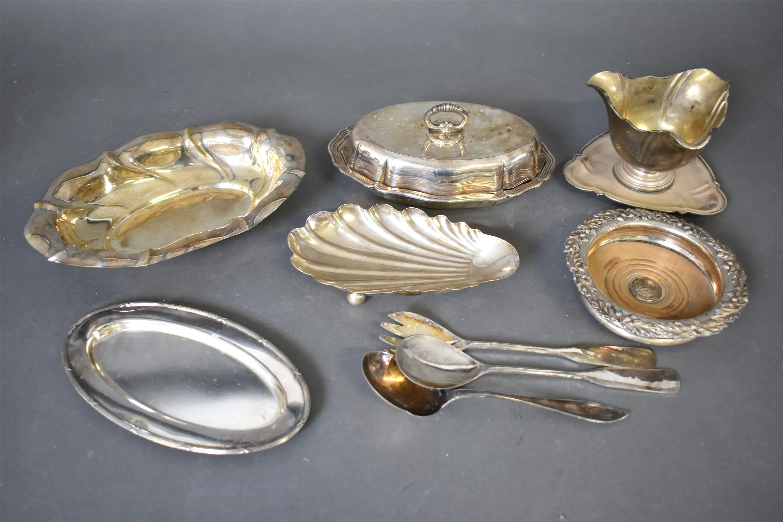 9147. Parti nysilver bl.a coster, längsta 29 cm