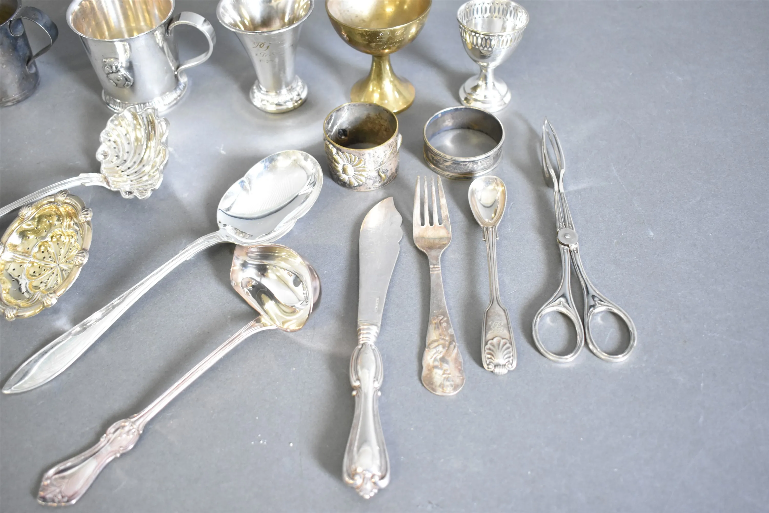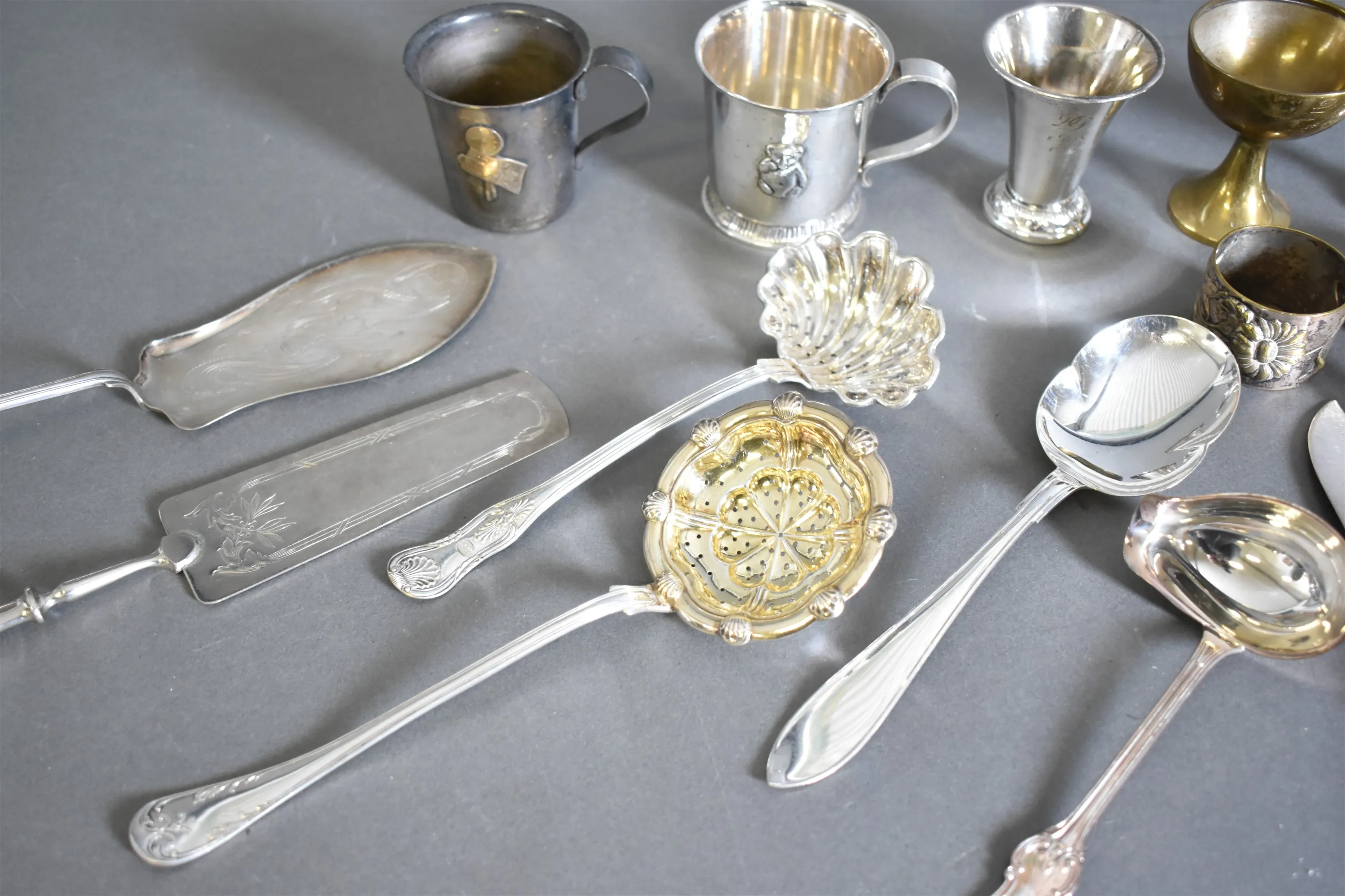 14784. Parti nysilver bla bägare och tårtspadar, högsta höjd 7 cm