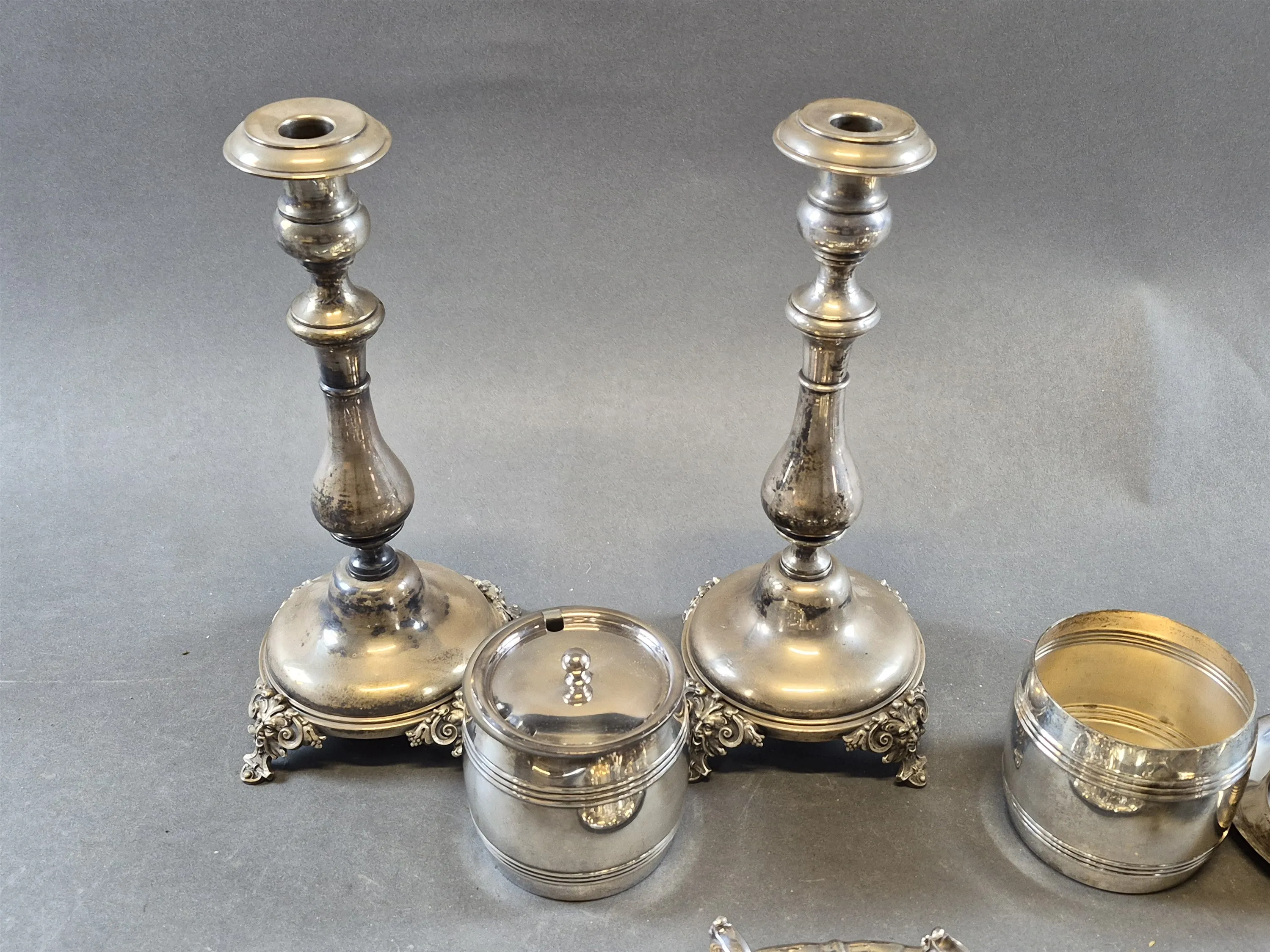 19812. Parti nysilverföremål, bl.as ljusstakar, högsta 32 cm