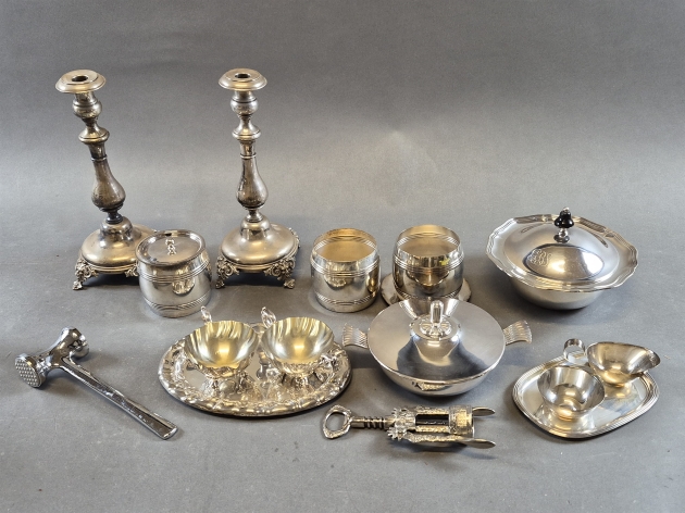 19812. Parti nysilverföremål, bl.as ljusstakar, högsta 32 cm