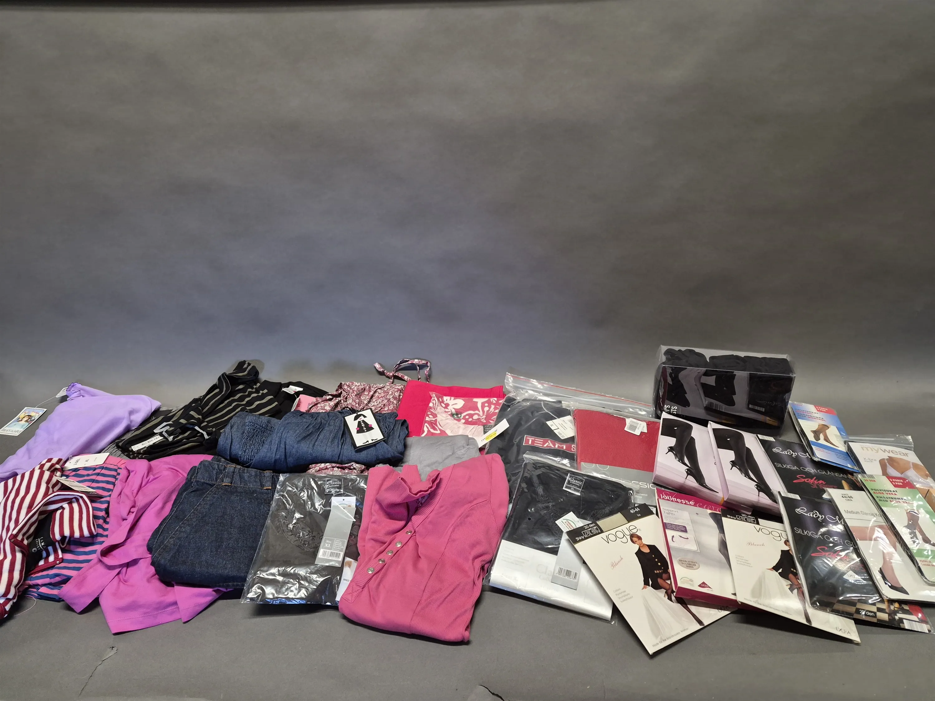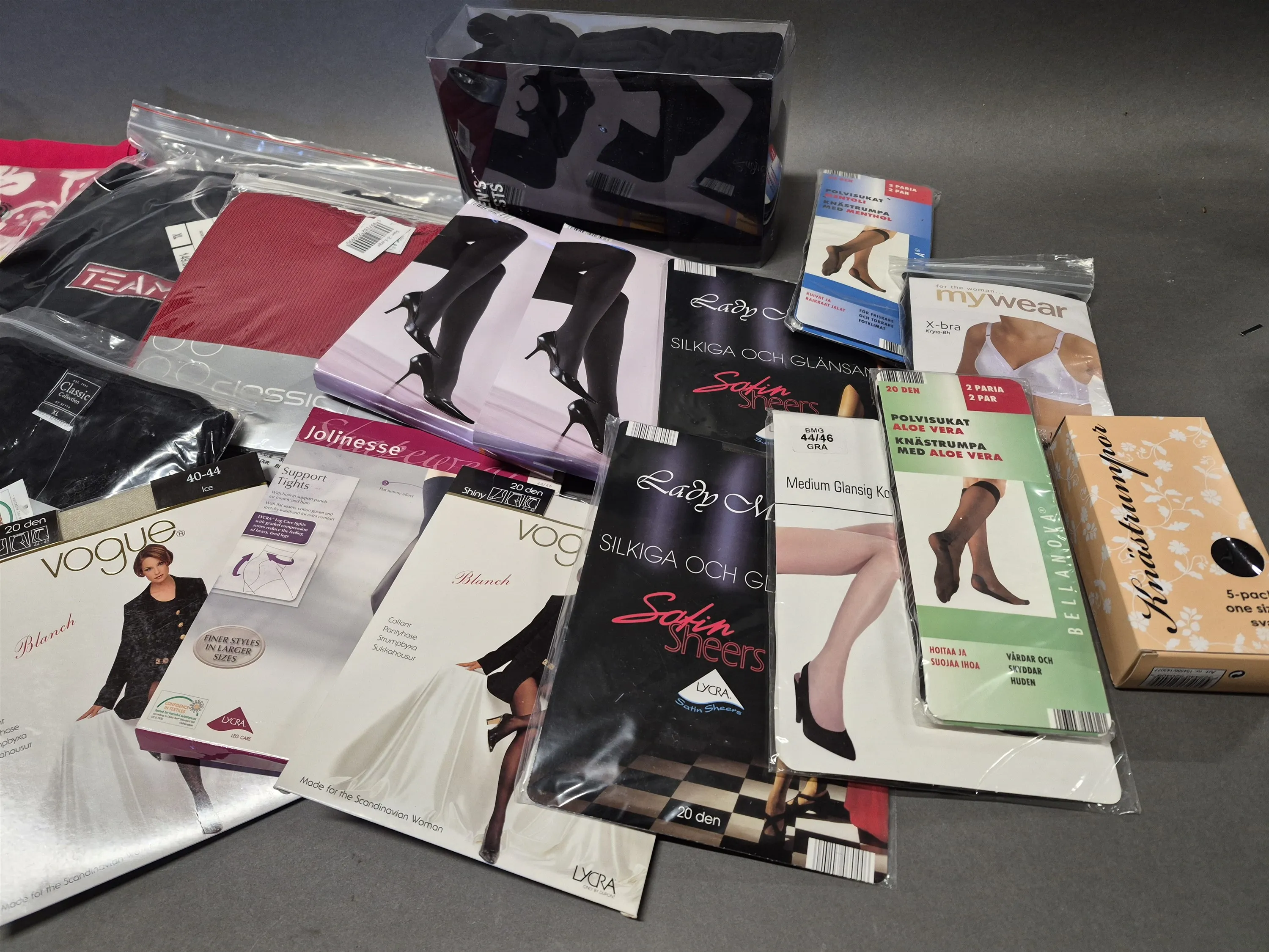 18269. Parti oanvända damkläder, strumpor och strumpbyxor bla strl XL
