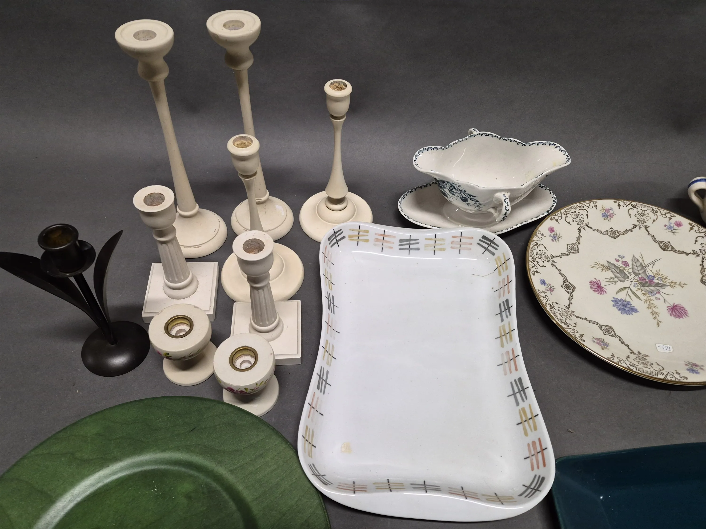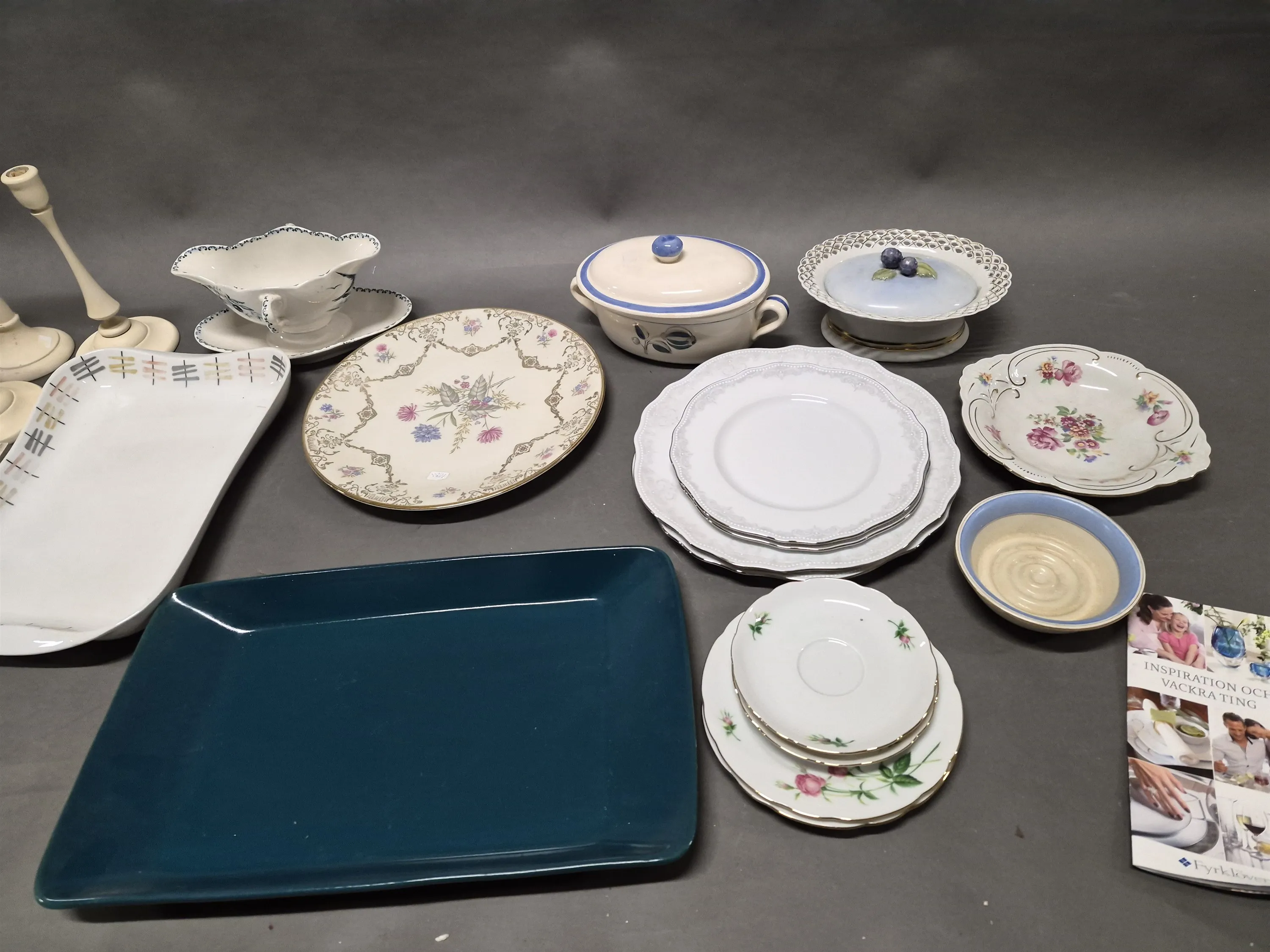 17629. Parti porslin & träljusstakar högsta 28 cm