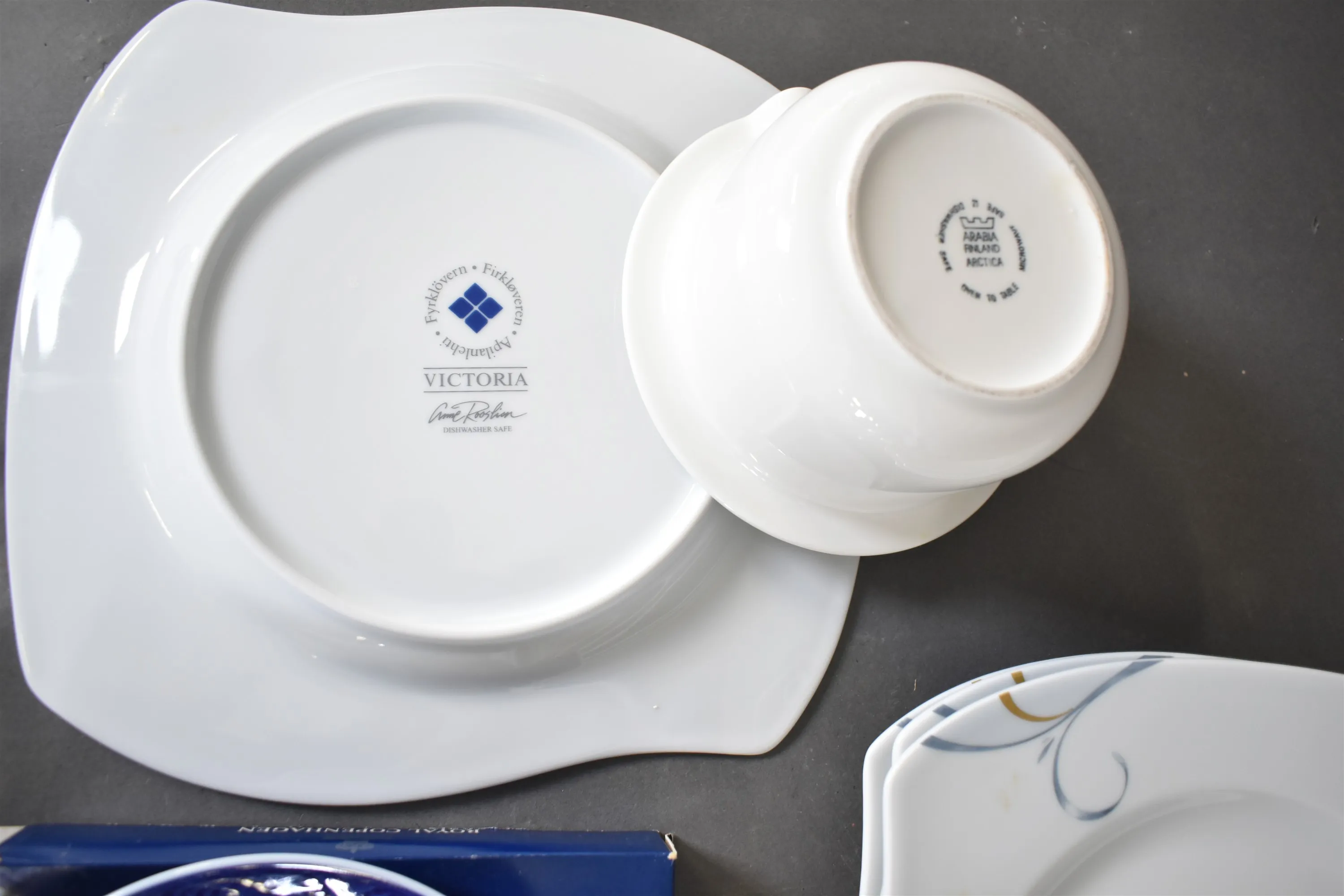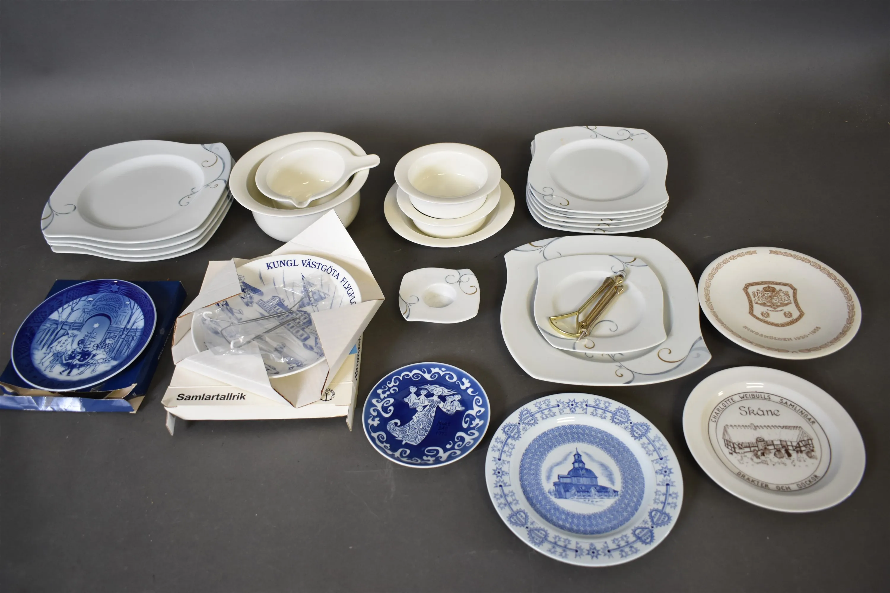 14495. Parti porslin, bl.a Arabia & minnestallrikar längsta 28 cm