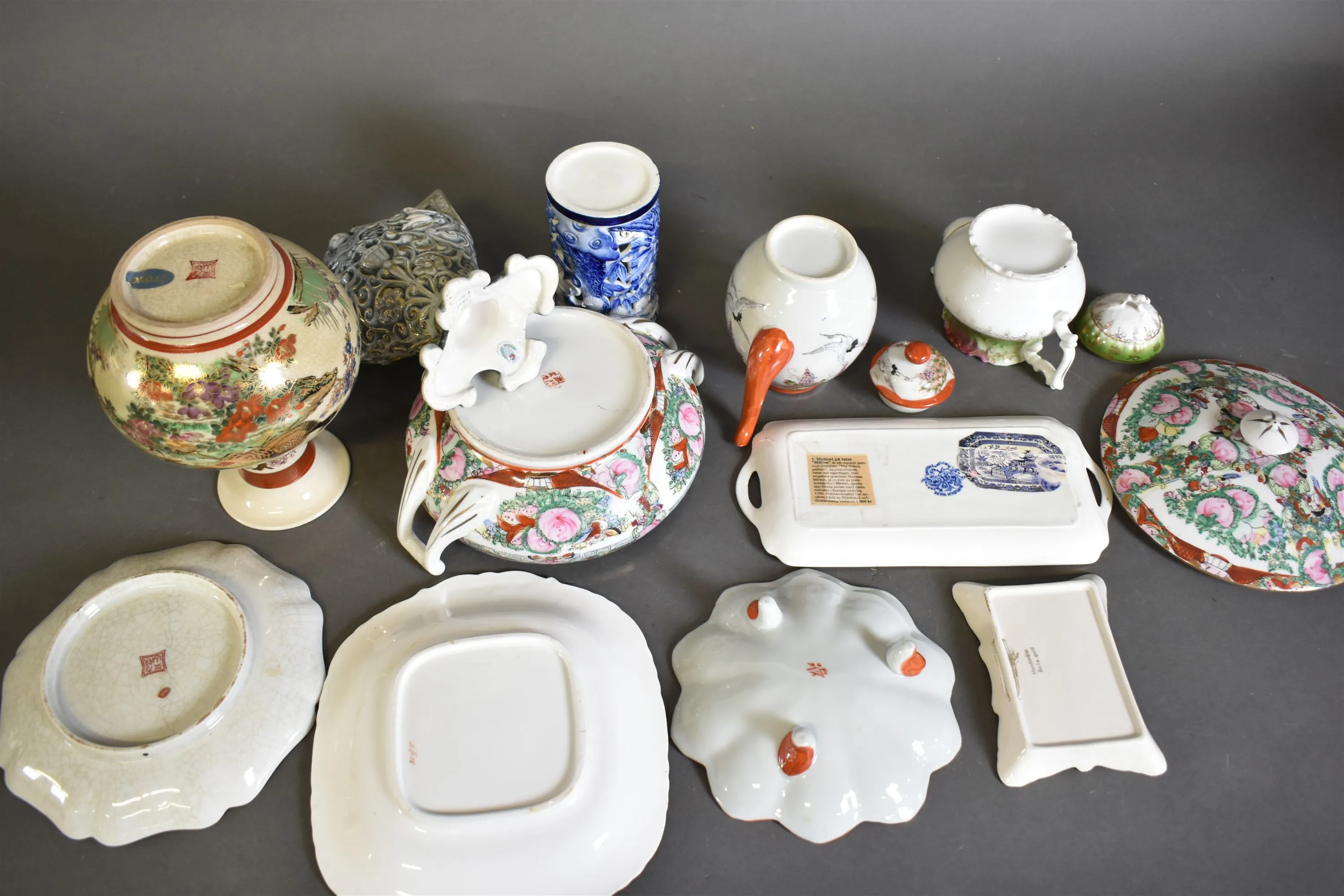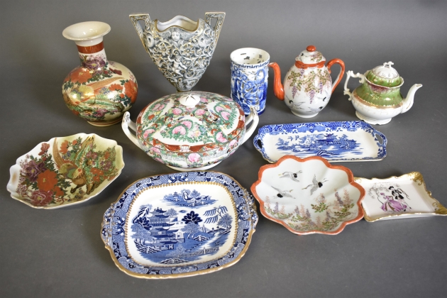 13306. Parti, porslin, bl.a Asiatisk dekor 28 cm