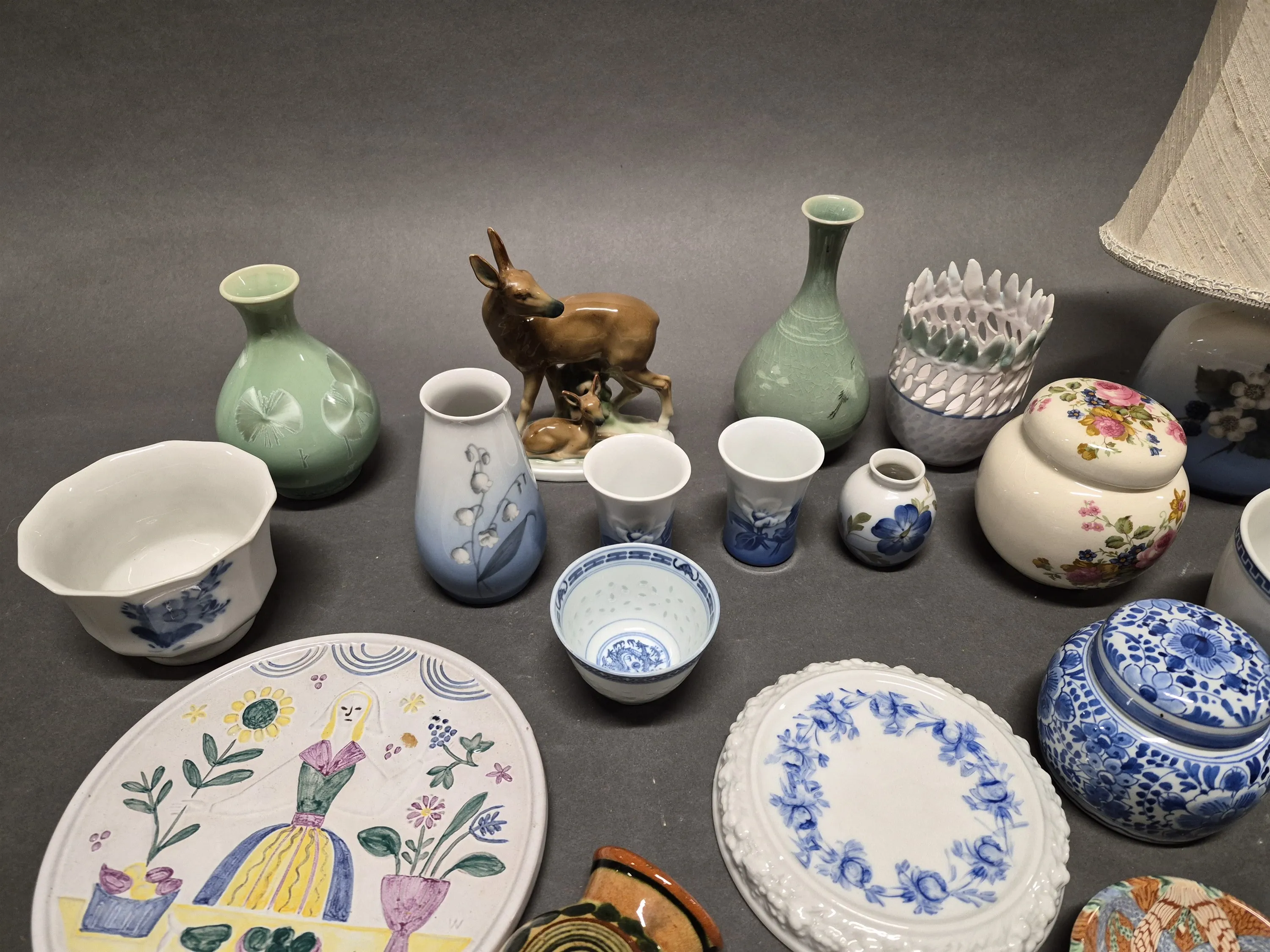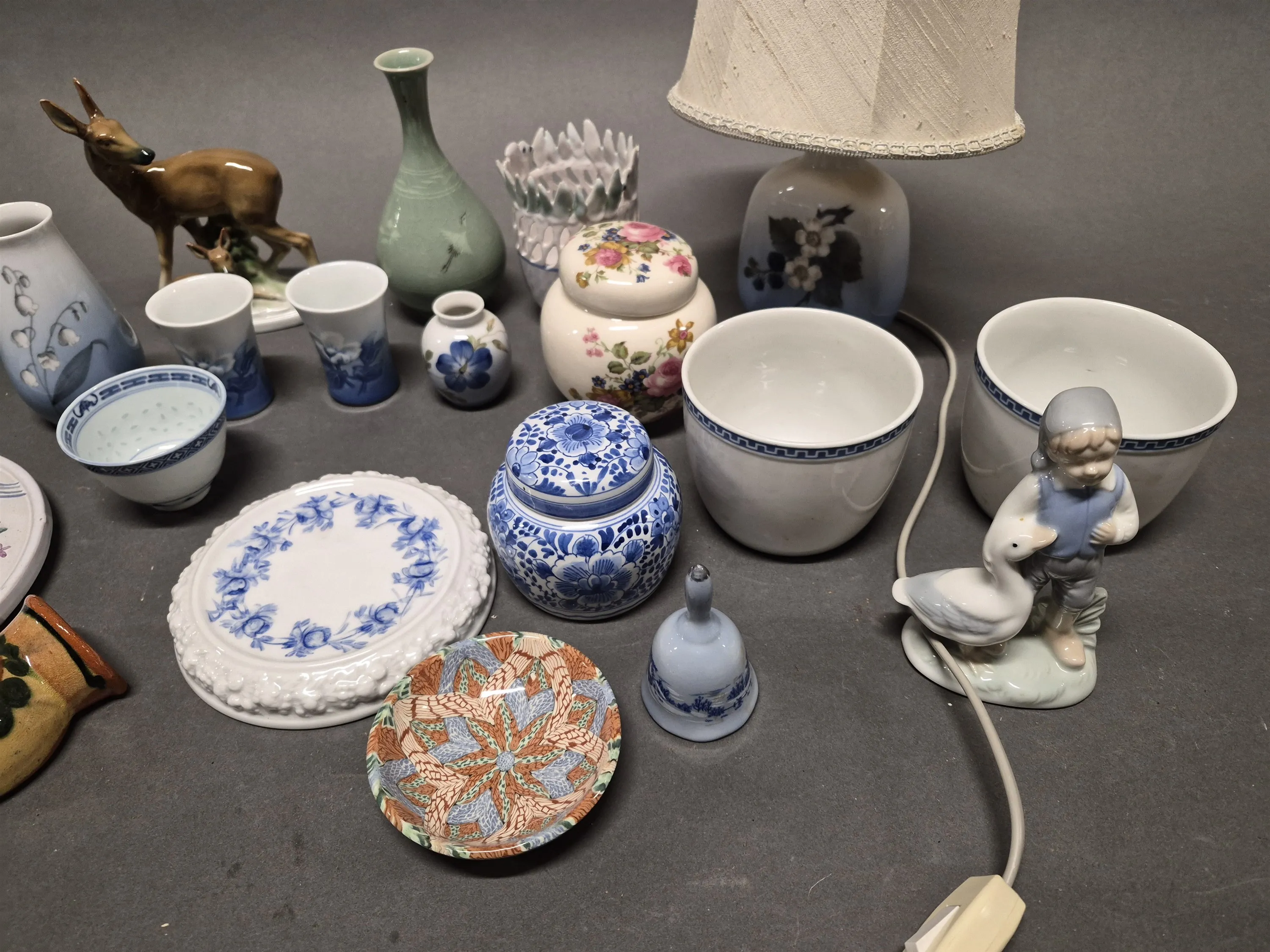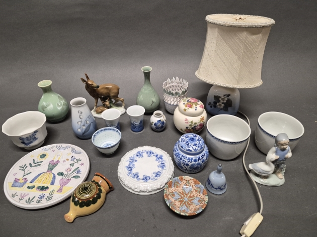 18506. Parti porslin bl.a bordslampa & vaser Kunglig Dansk, högsta 15 cm