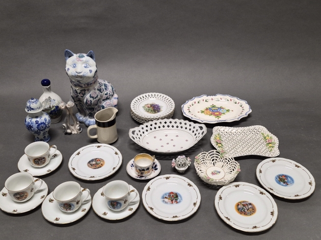 18952. Parti porslin, bl.a fat med gallerkant & Julservisdelar, Fyrklövern högsta 30 cm