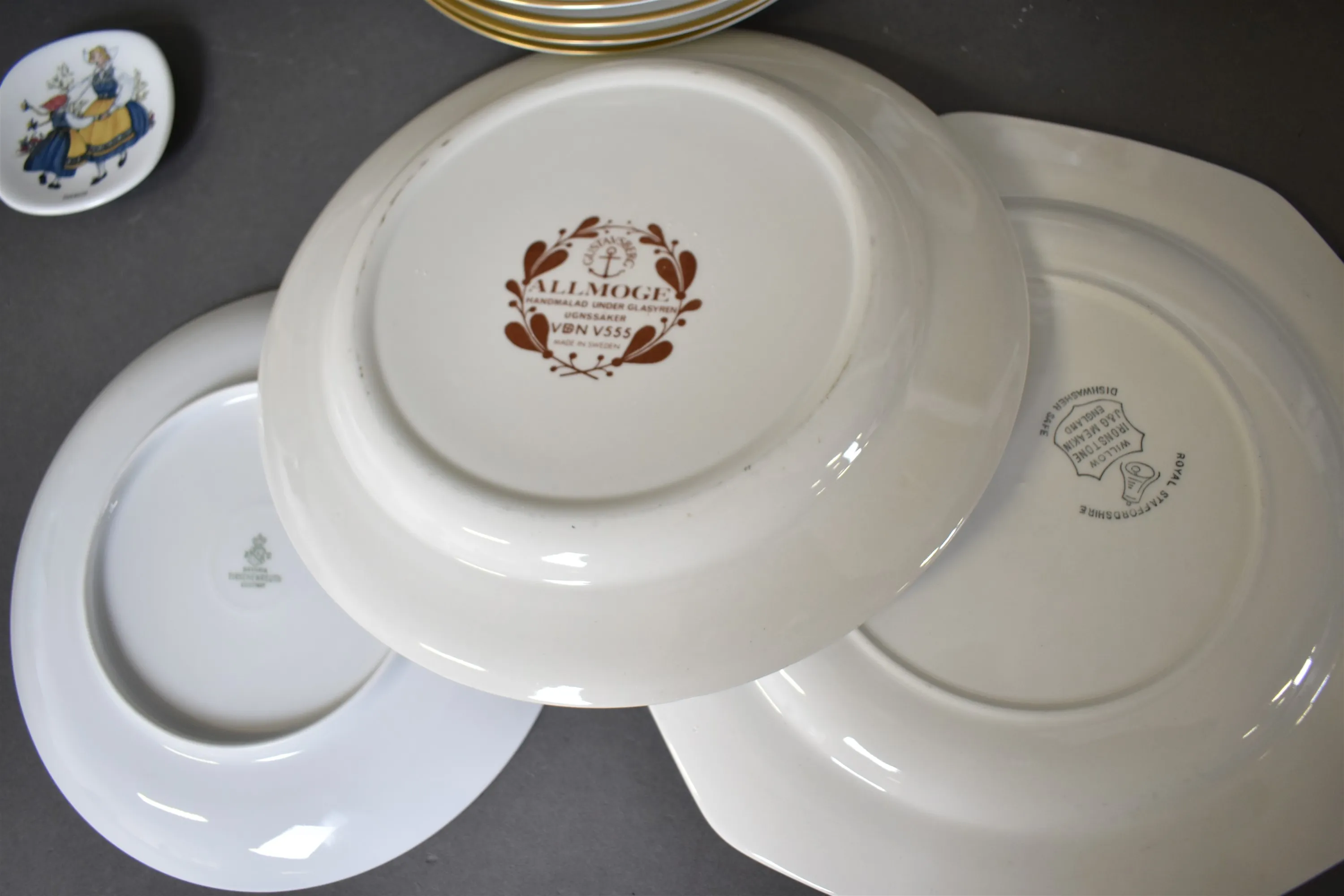 15575. Parti porslin bl.a fruktservis & vas med fågeldekor, högsta 23 cm