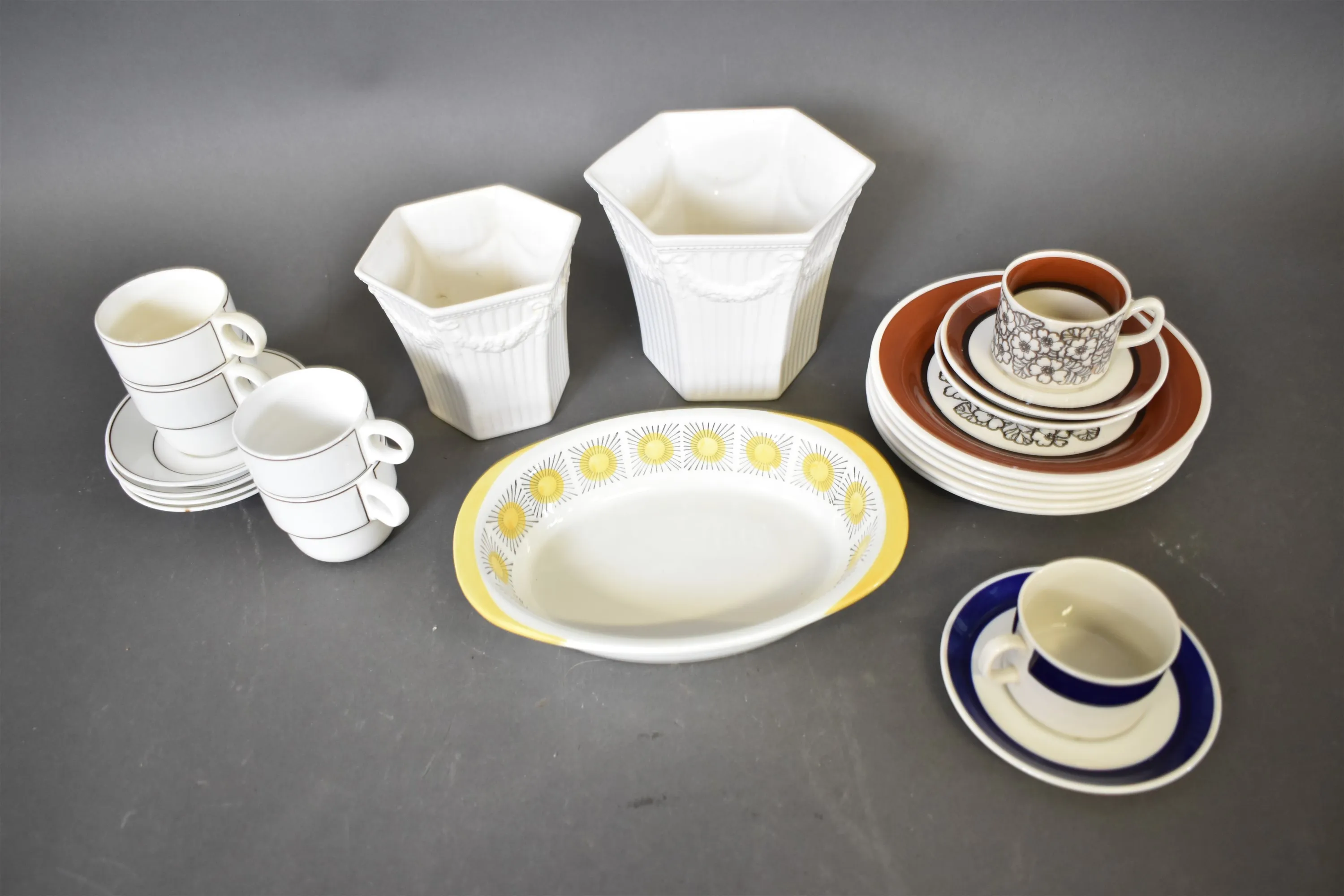 14543. Parti porslin bl.a kaffekoppar & ytterfoder Emire höjd 14 cm