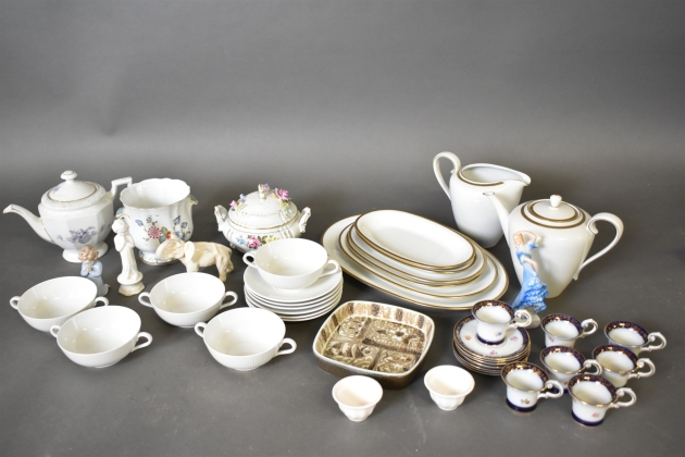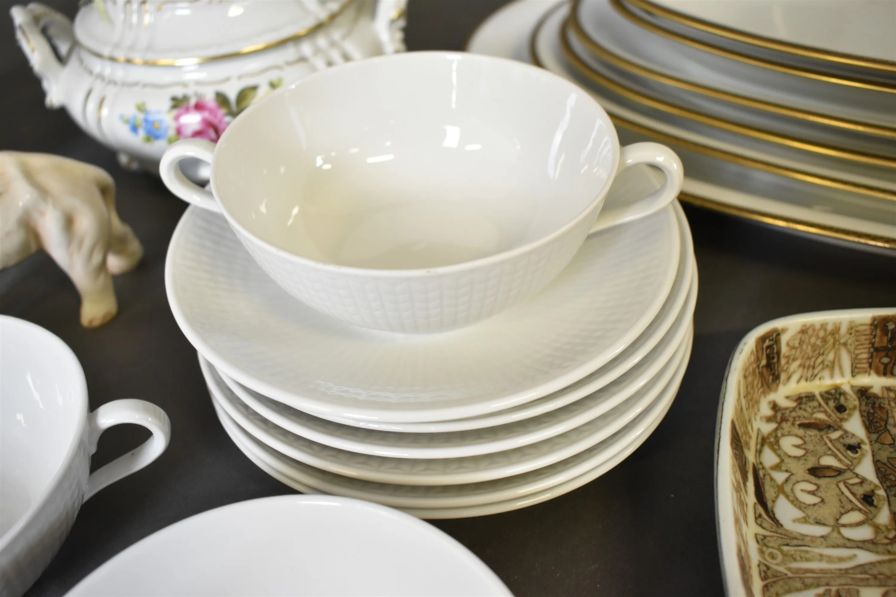 13057. Parti porslin bl.a servisdelar & fat Kunglig Dansk högsta 20 cm