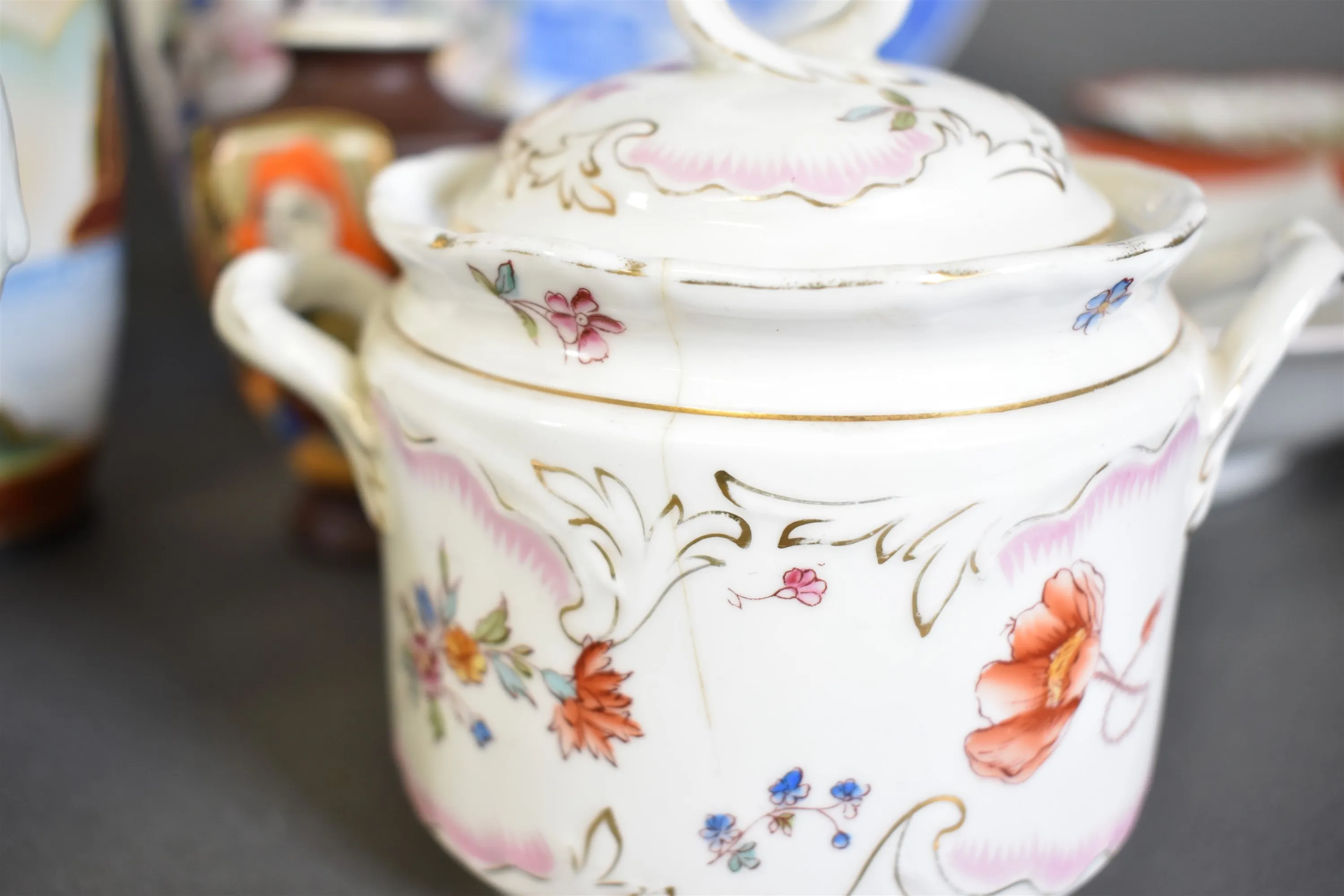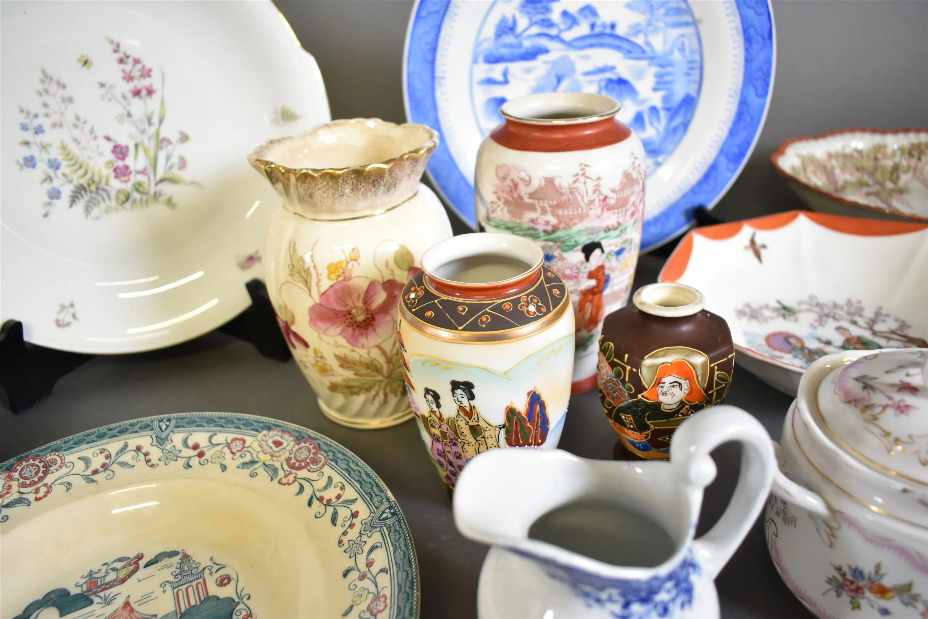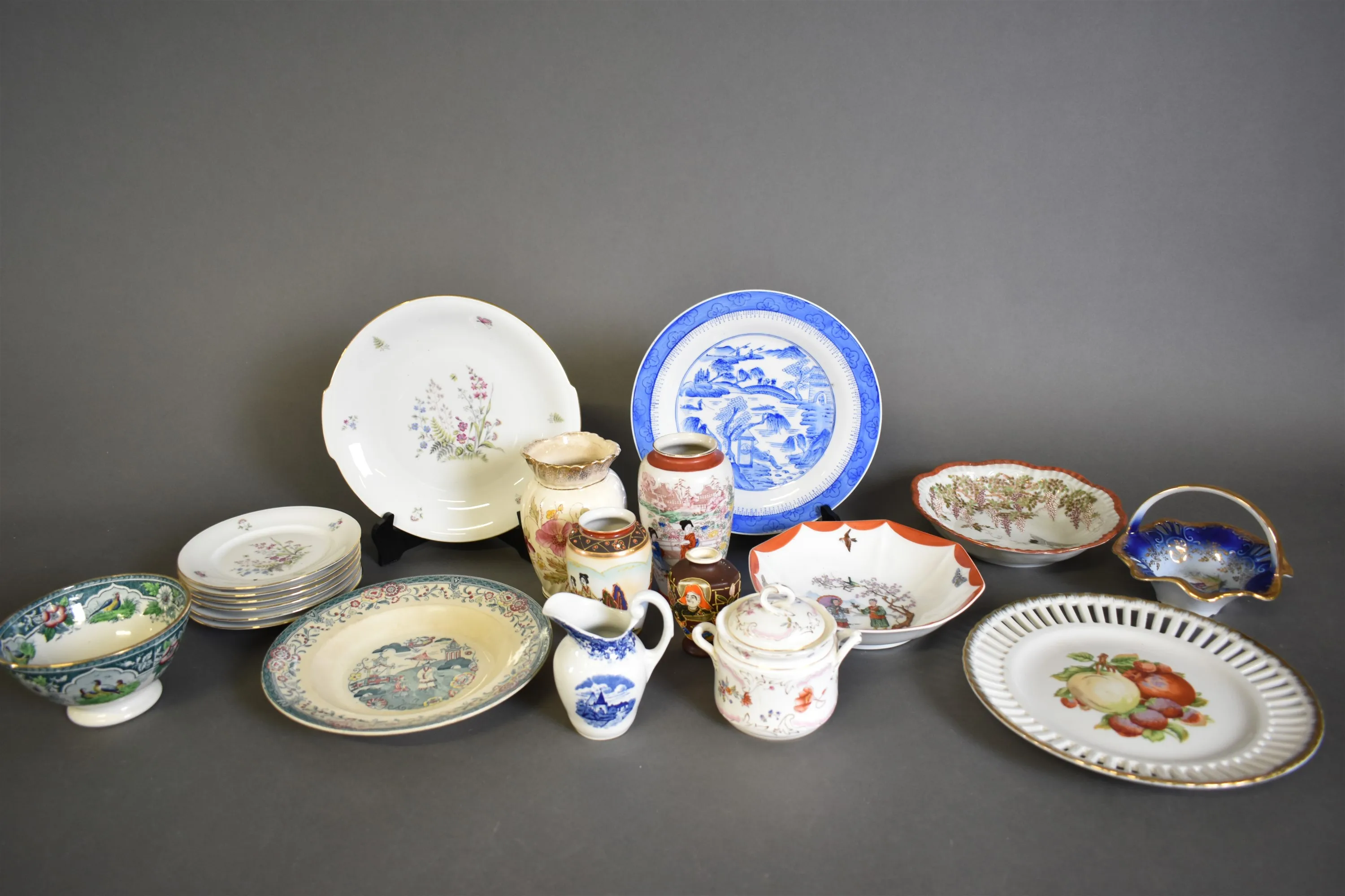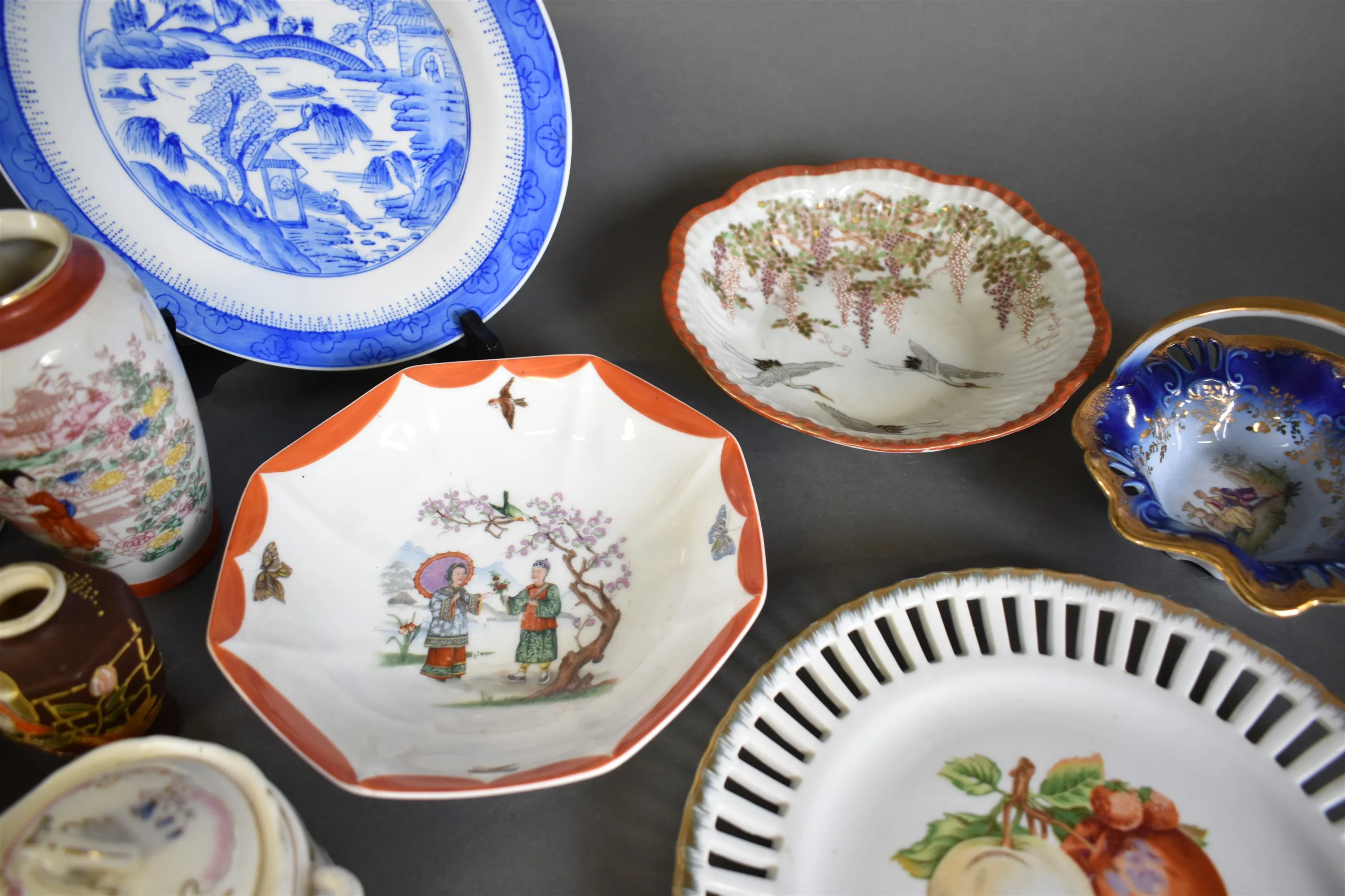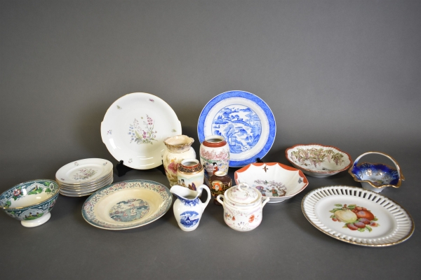 11431. Parti porslin bla Hackefors och asiatisk stil, längsta mått 26 cm