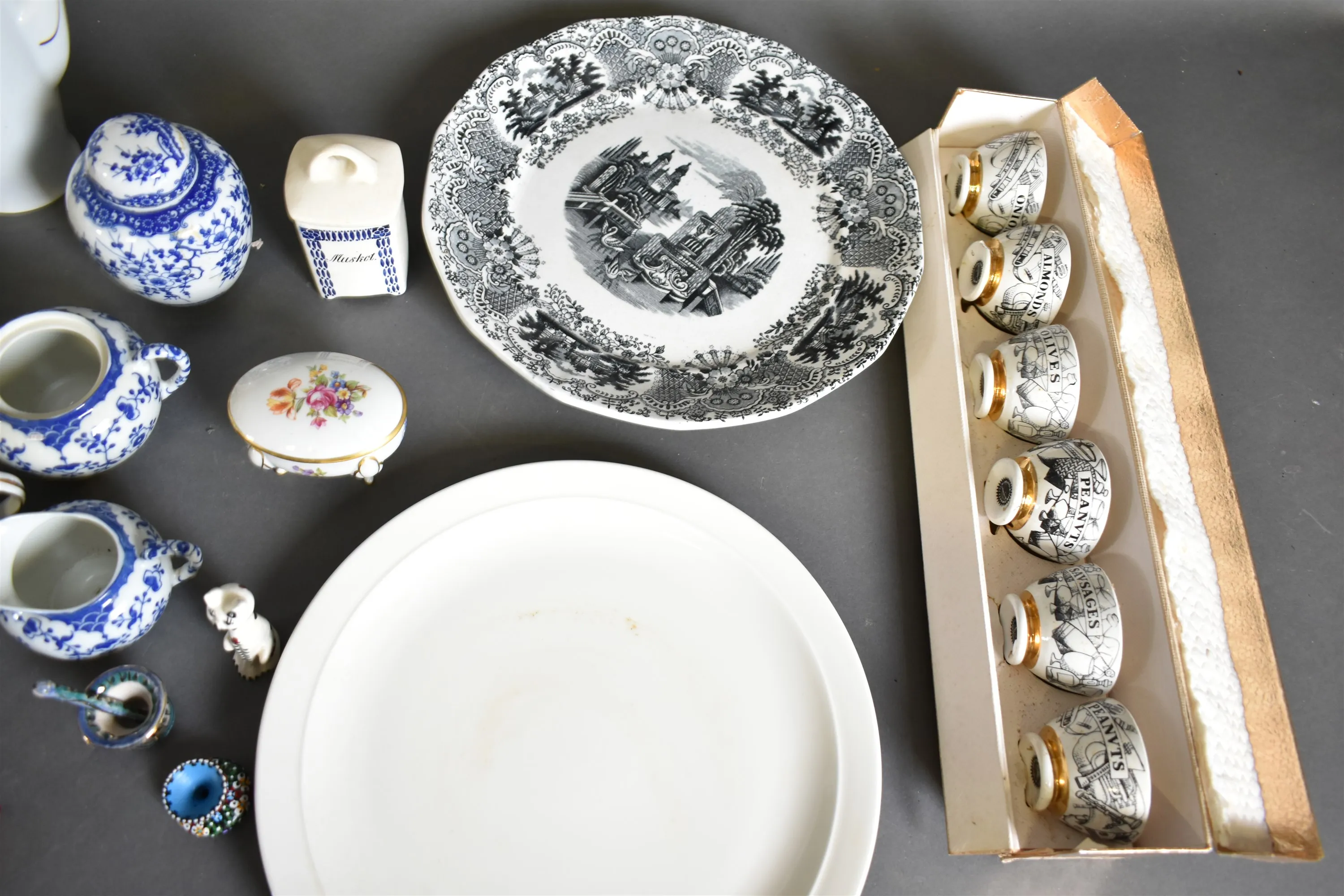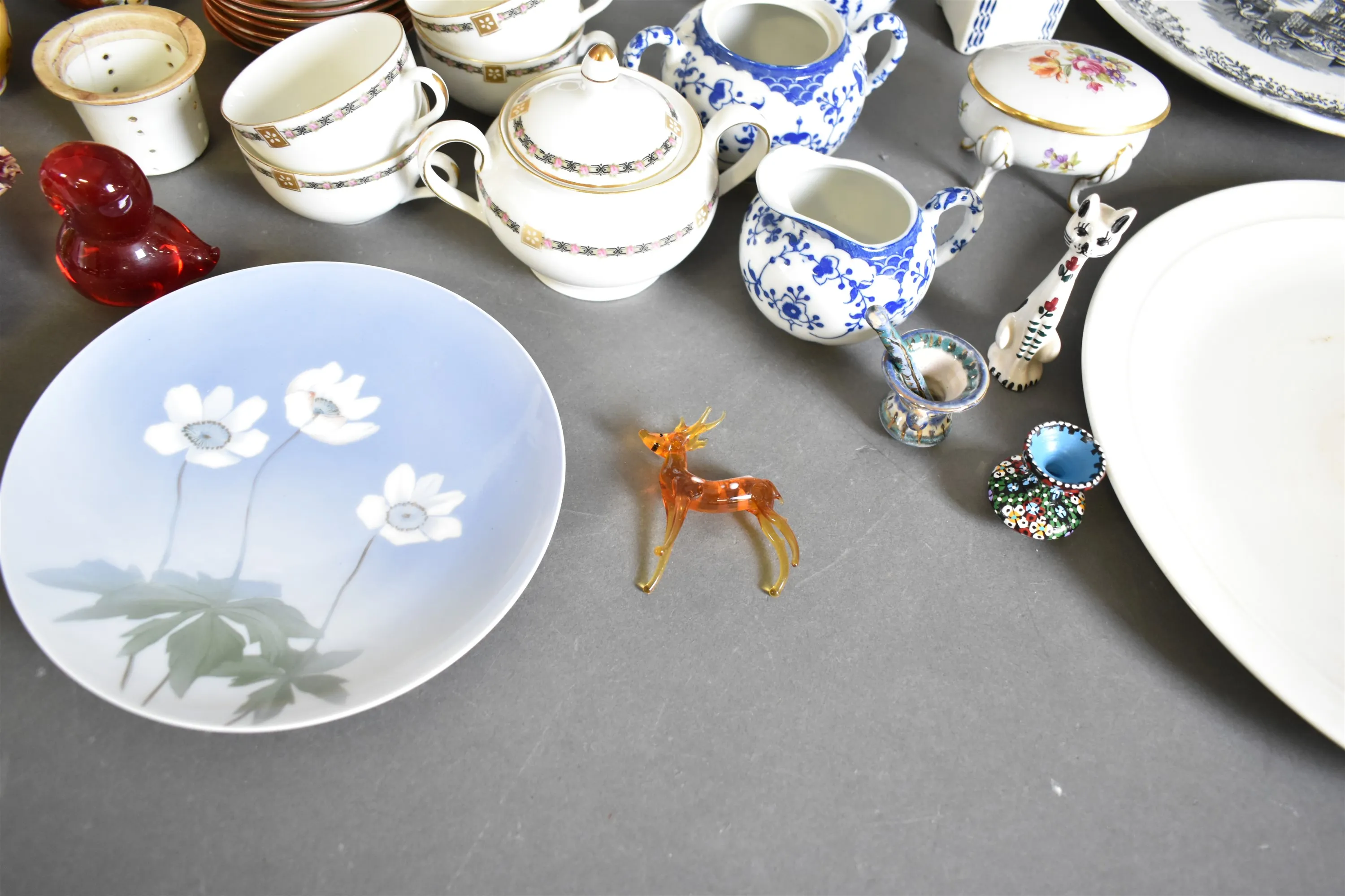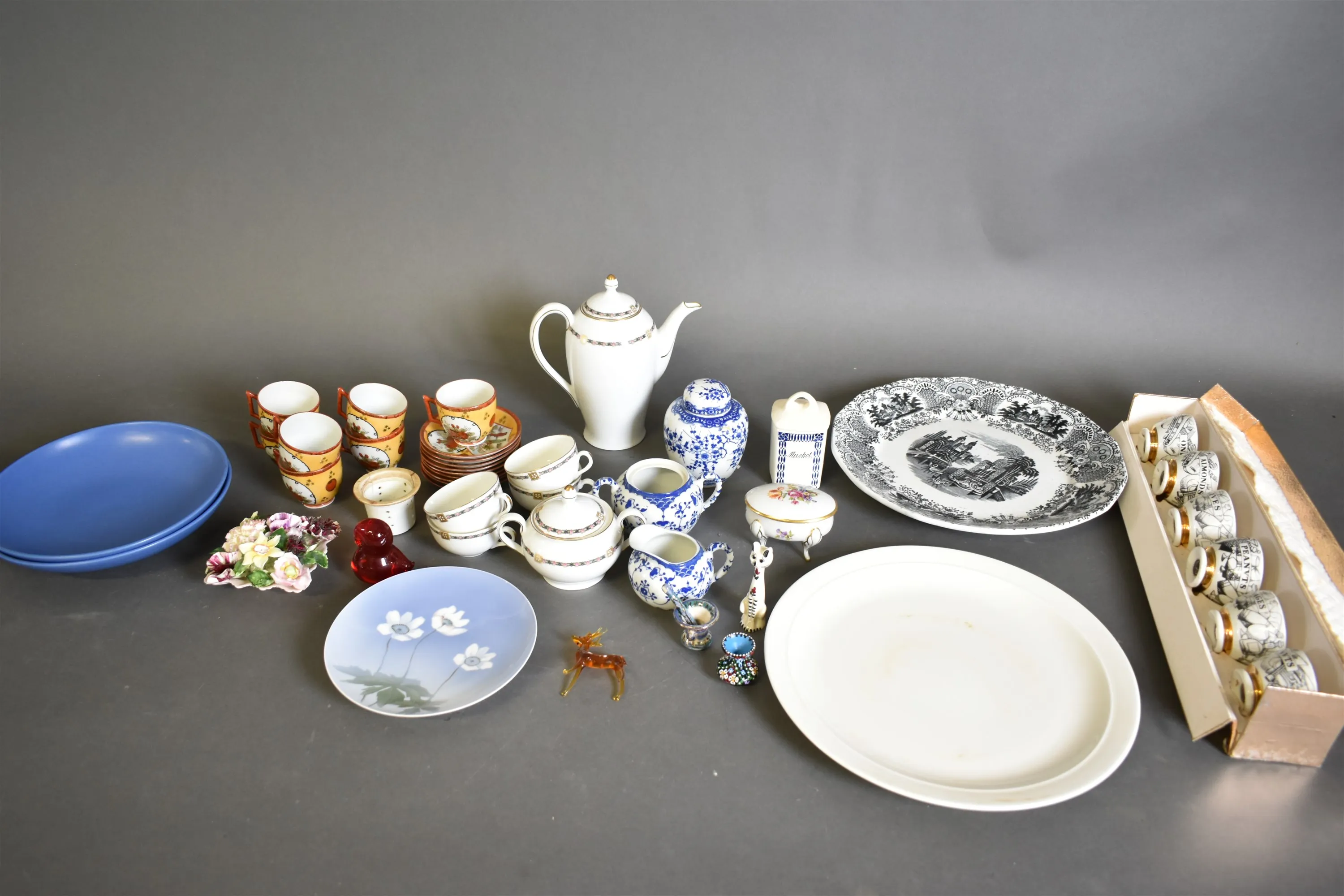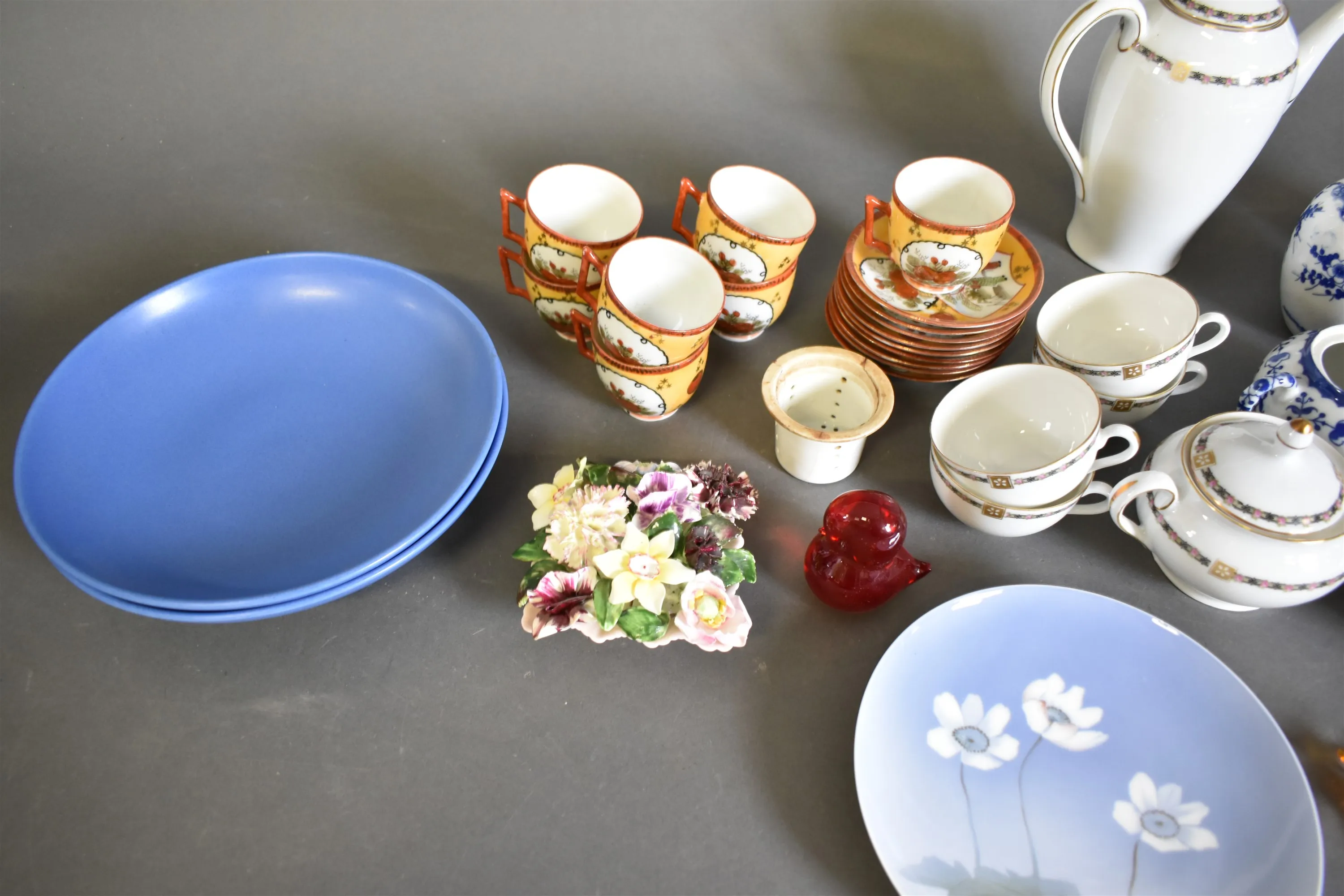 12472. Parti porslin keramik, bl.a kaffegods & glasfågel, största diameter 34 cm