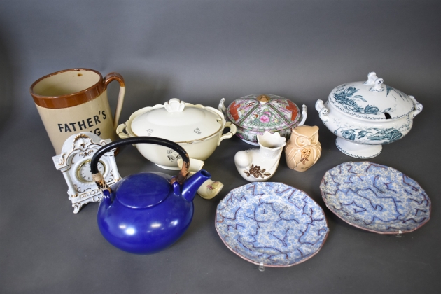 12390. Parti porslin keramik, bl.a tekanna & stop & terriner, högsta 23 cm