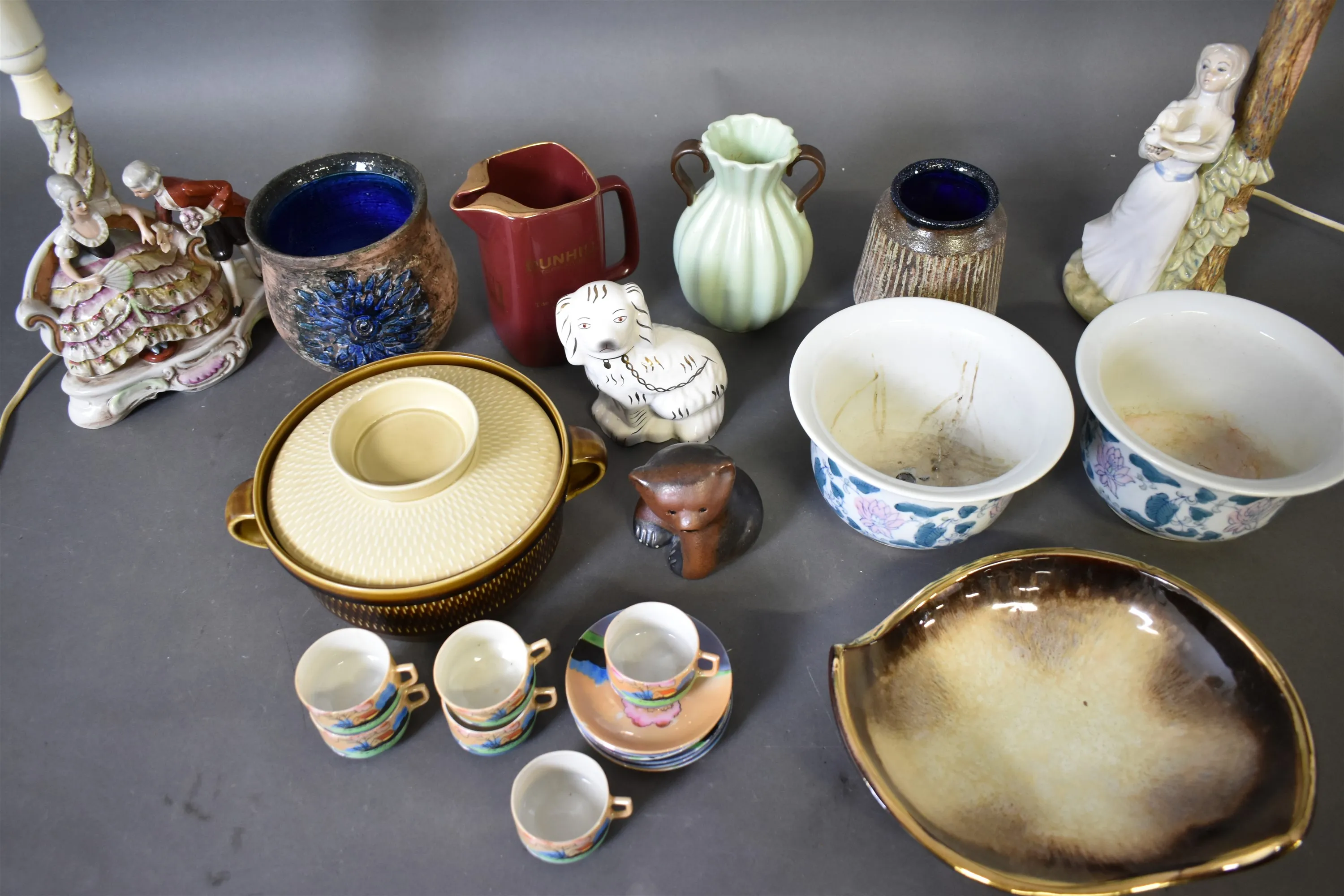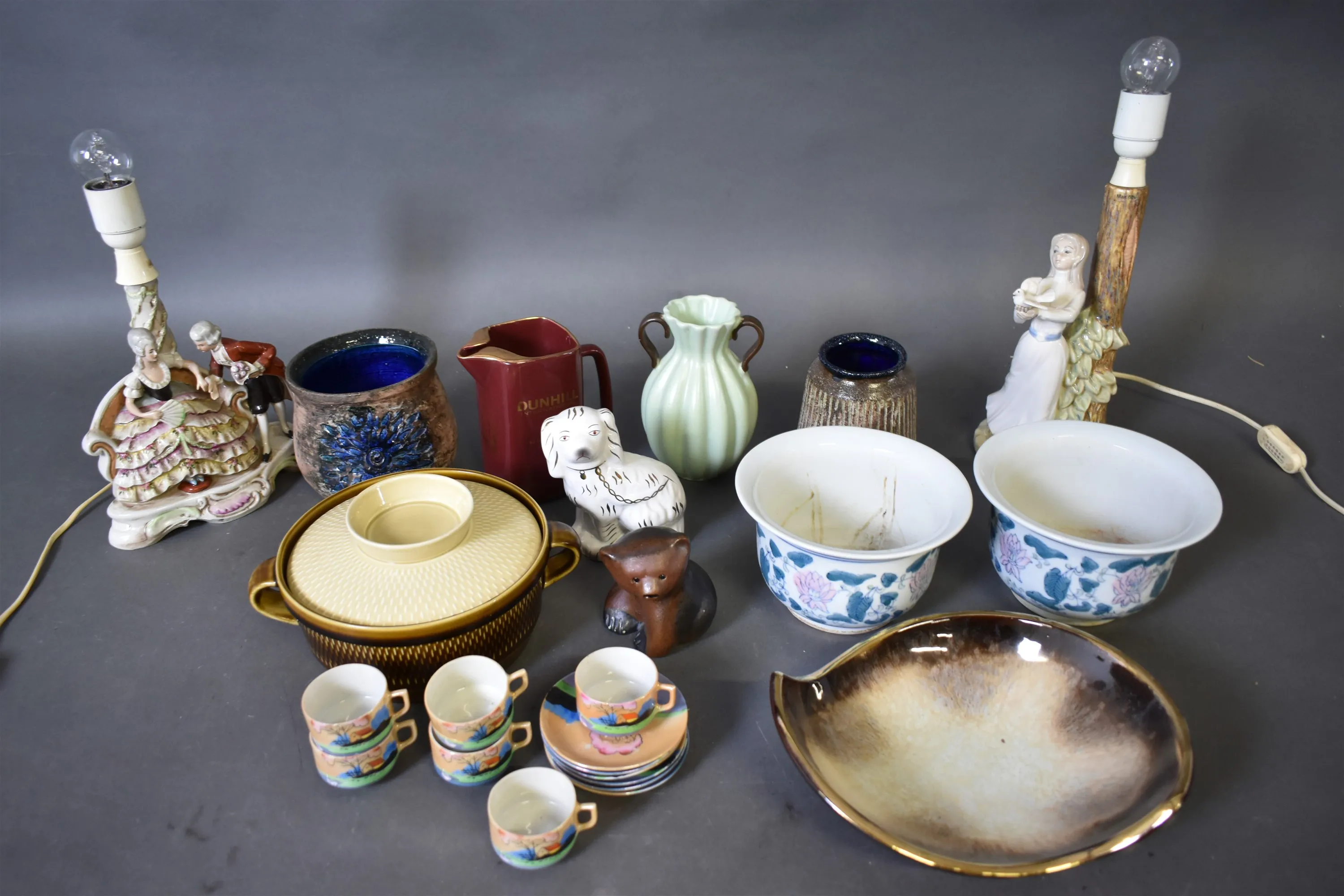 16328. Parti porslin/keramik, bl.a figurinlampor, ytterfoder högsta 38 cm