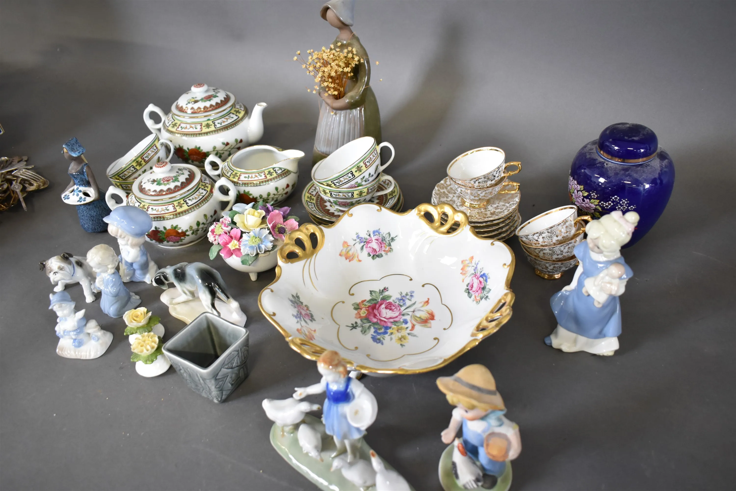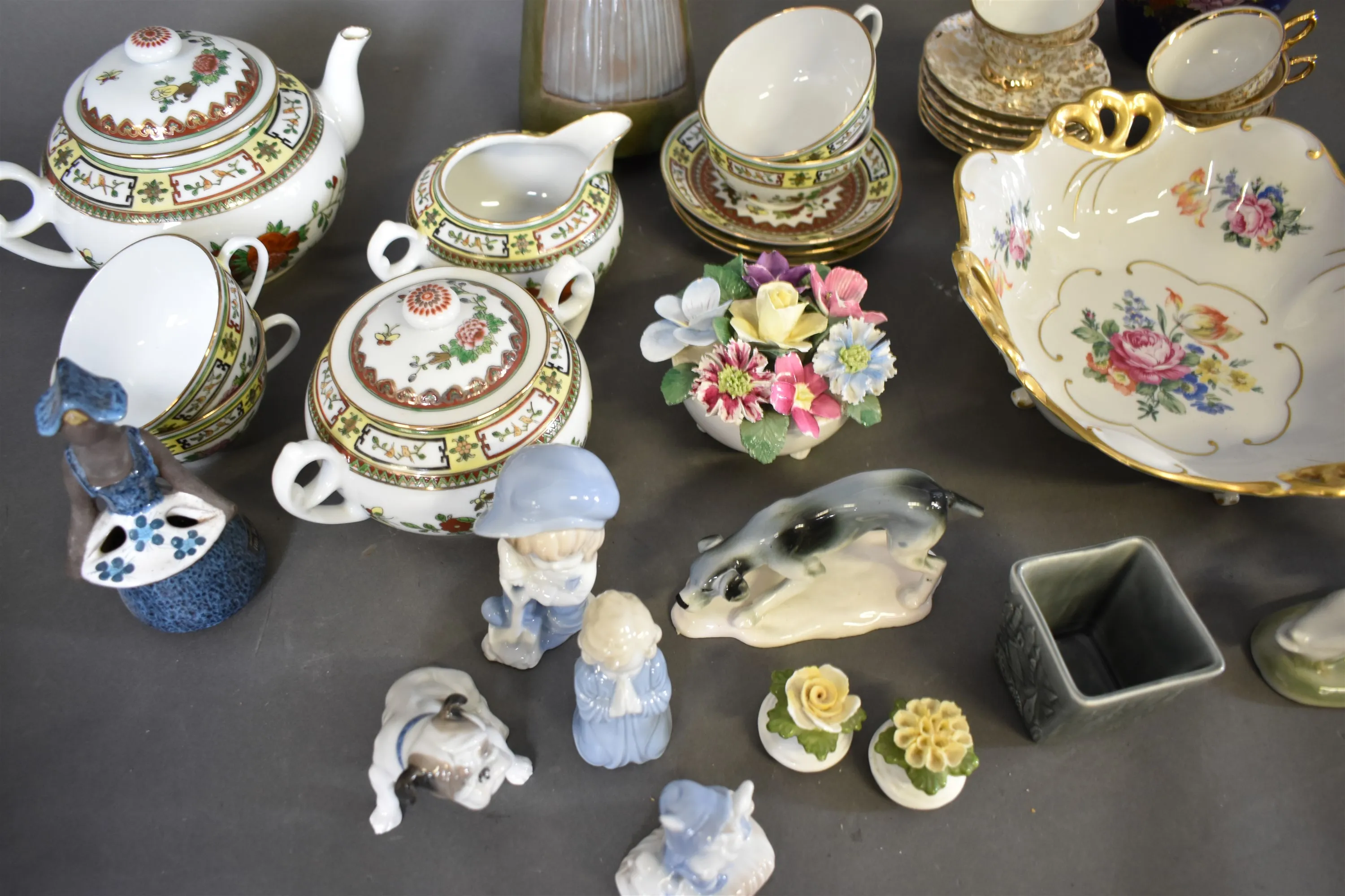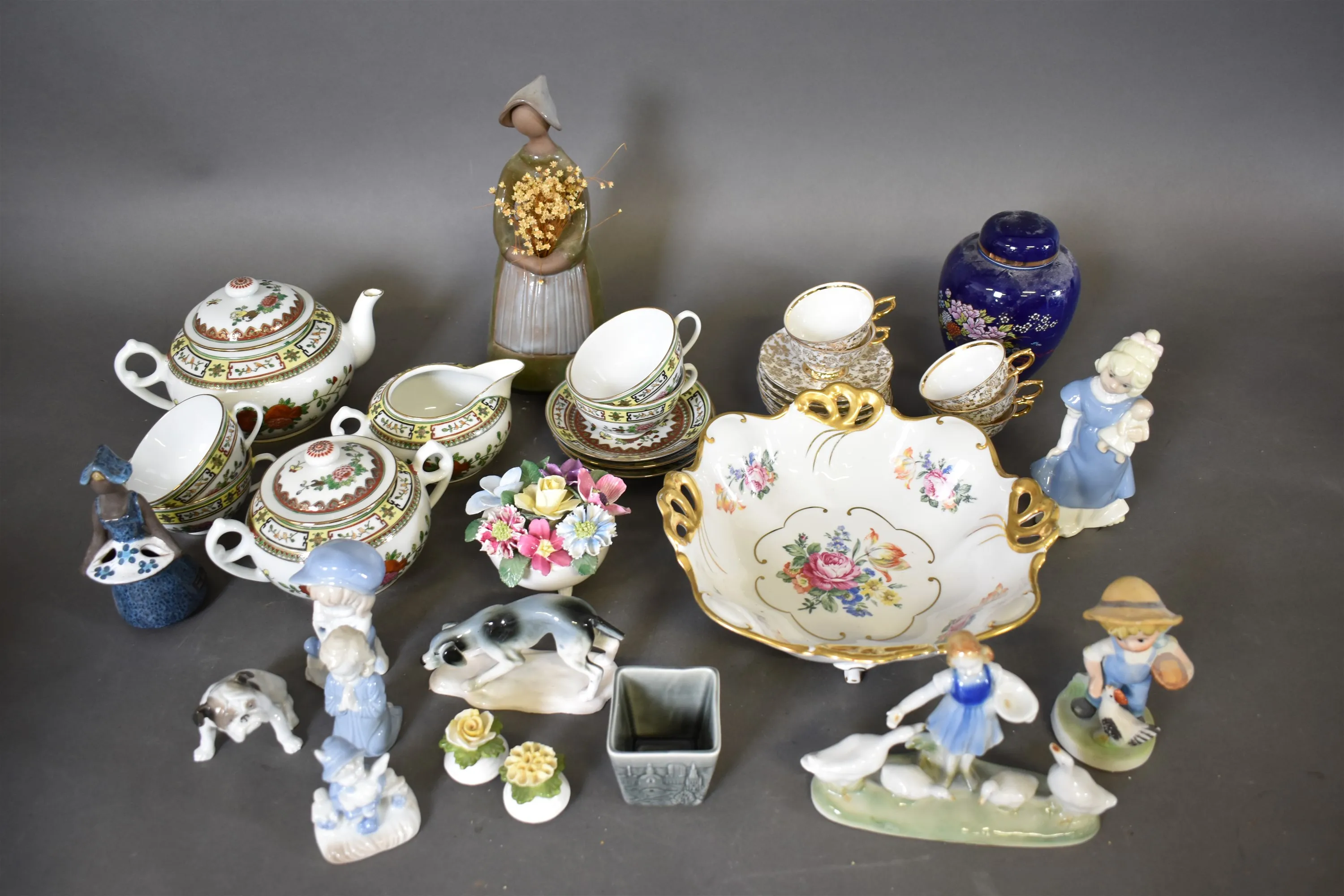 14116. Parti porslin/keramik bl.a tegods & figuriner högsta 28 cm
