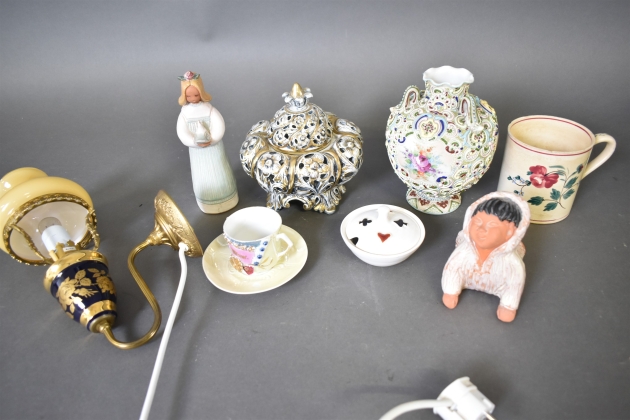 13315. Parti porslin/keramik, bl.a vaser vägglampa, högsta 30 cm
