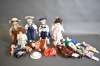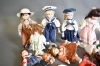 14486. Parti porslinsdockor och virkade möss, högsta höjd 44 cm