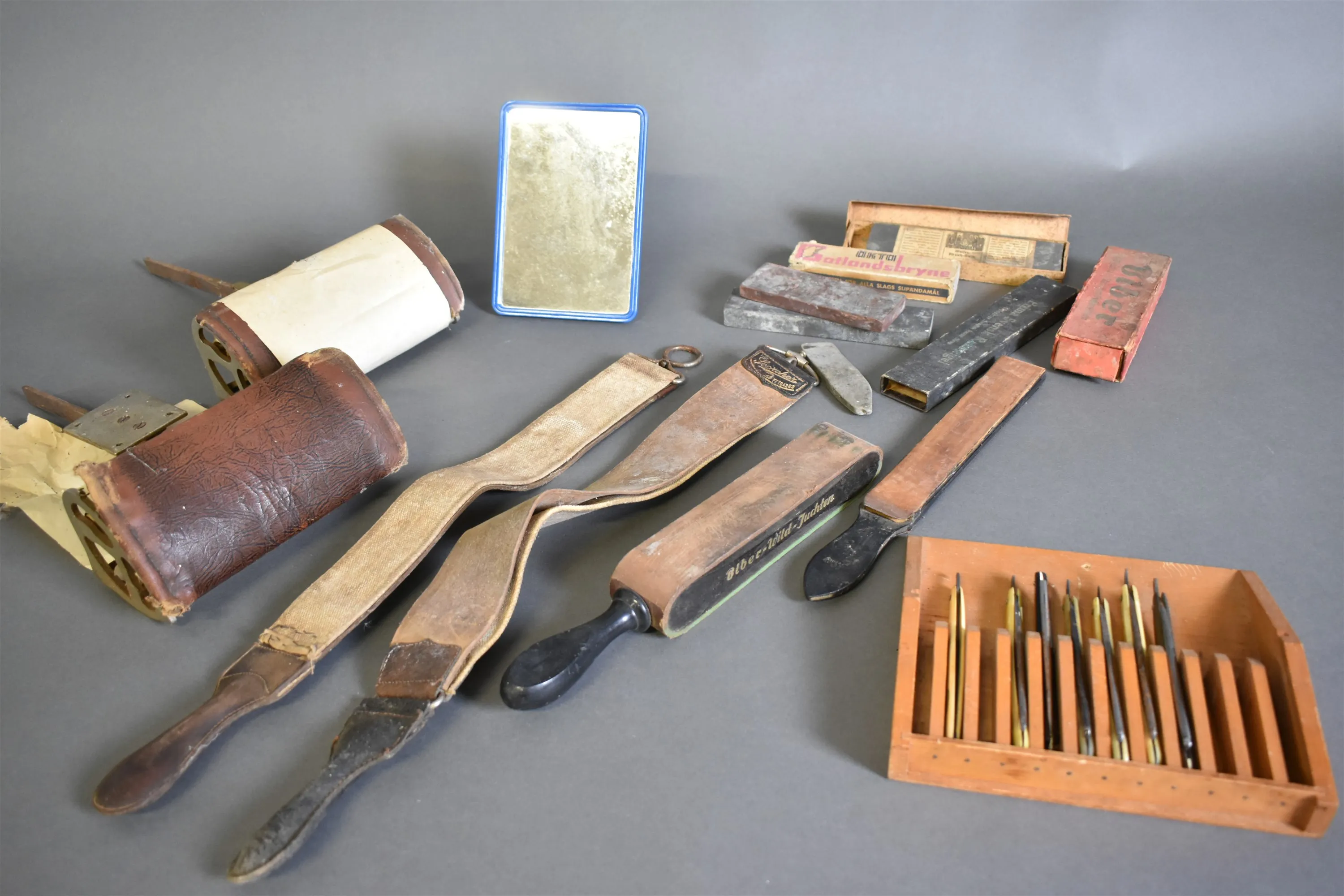 13992. Parti raktillbehör bla striglar och rakknivar