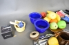 846. Parti retroföremål bl.a plastfruktor & borstar, längsta 40 cm