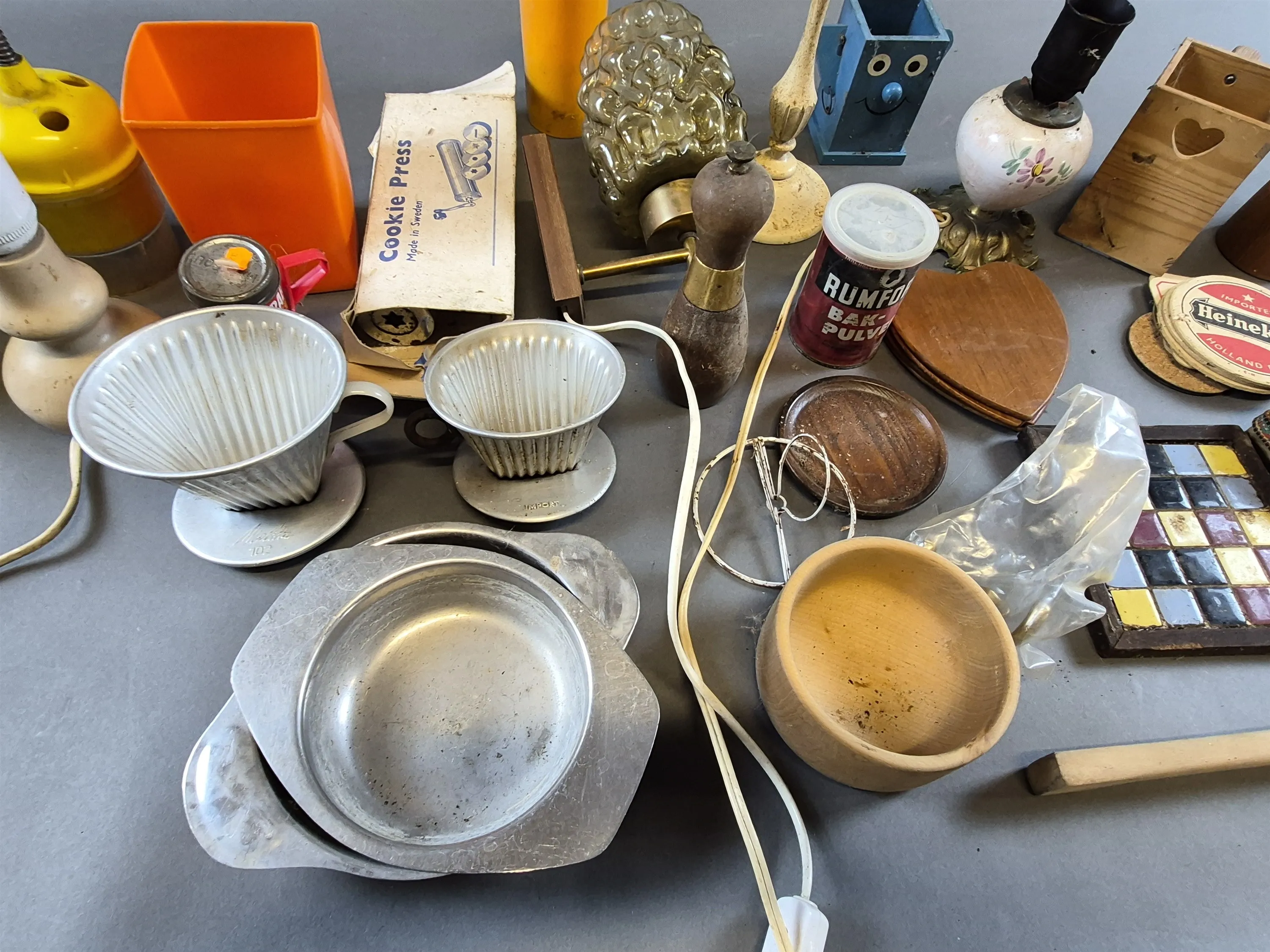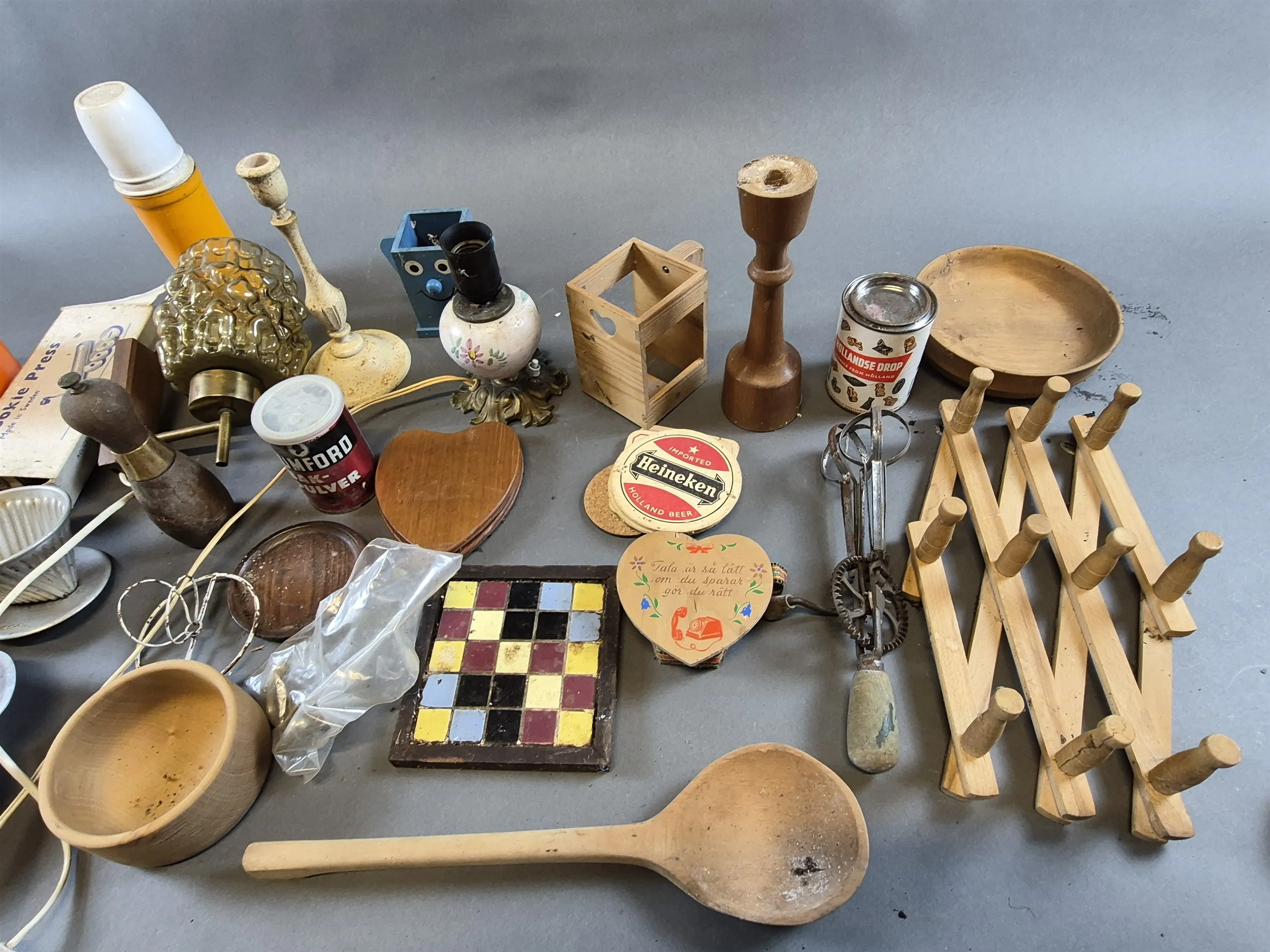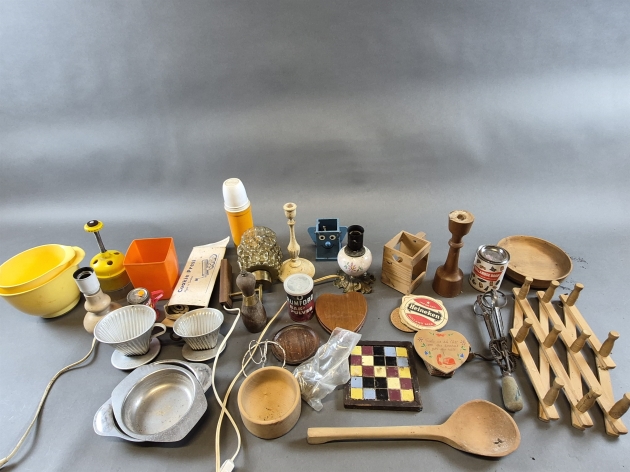 20931. Parti retroföremål, vägglampett, högsta 22 cm
