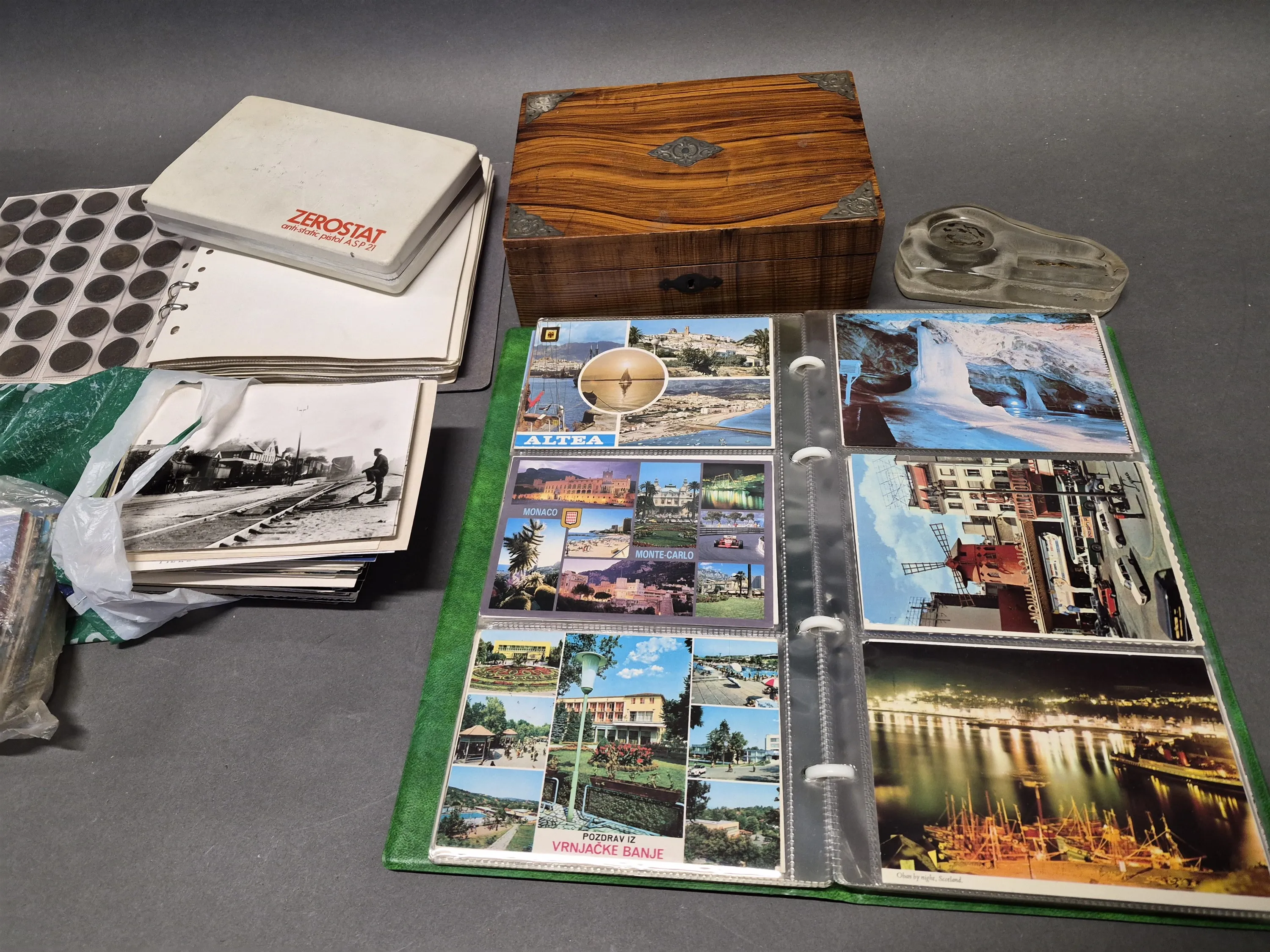 18618. Parti samlarsaker bla vykort och myntsamling i album