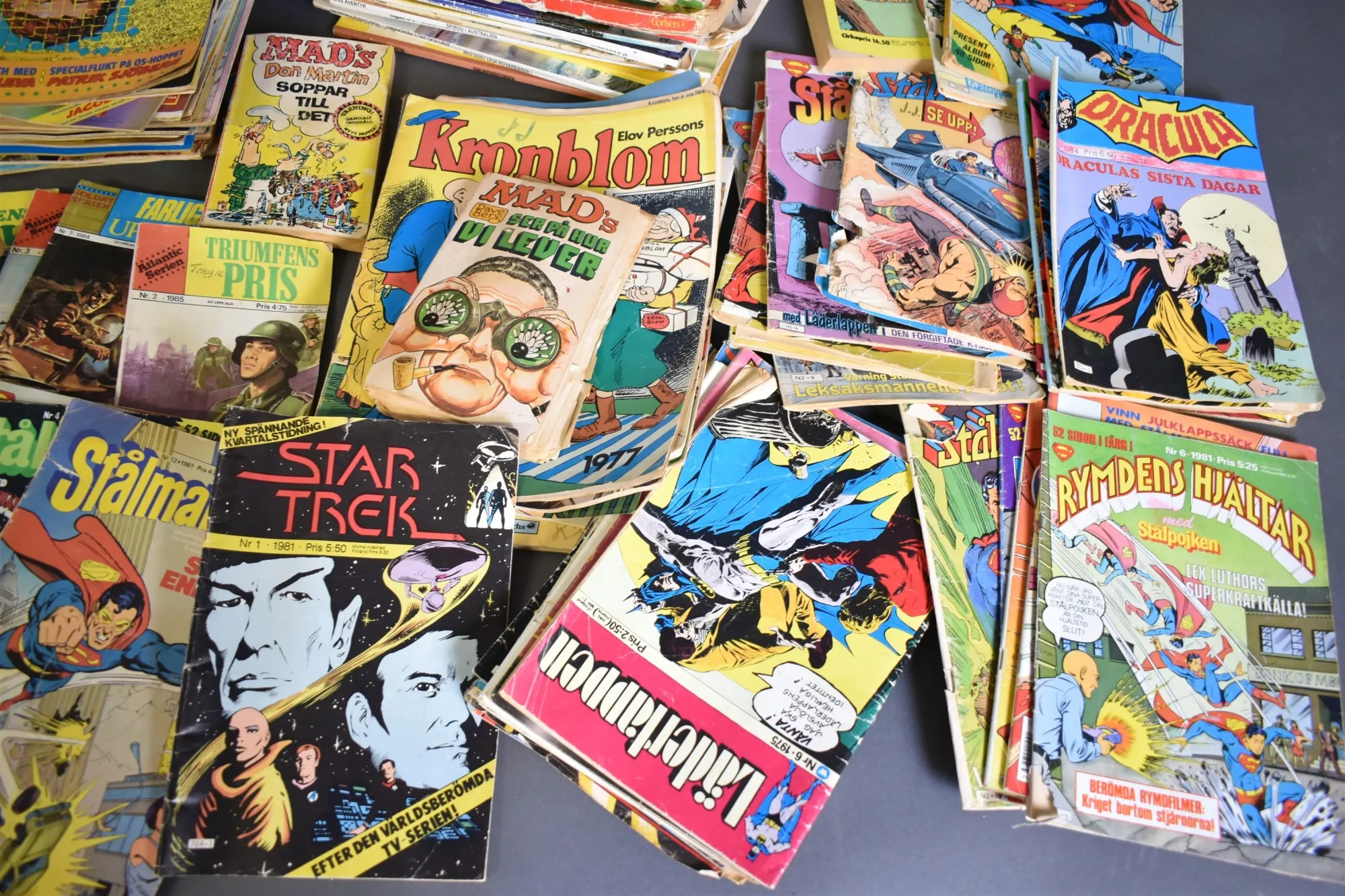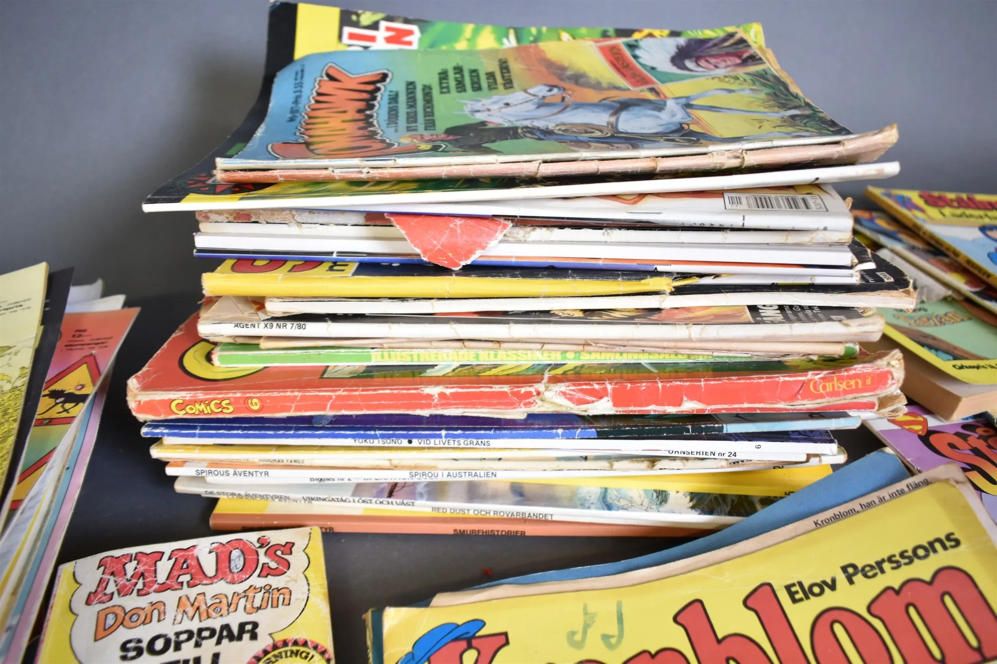 12691. Parti serietidningar bl.a Spindelmannen och Dracula, slitage, veck och skador finns