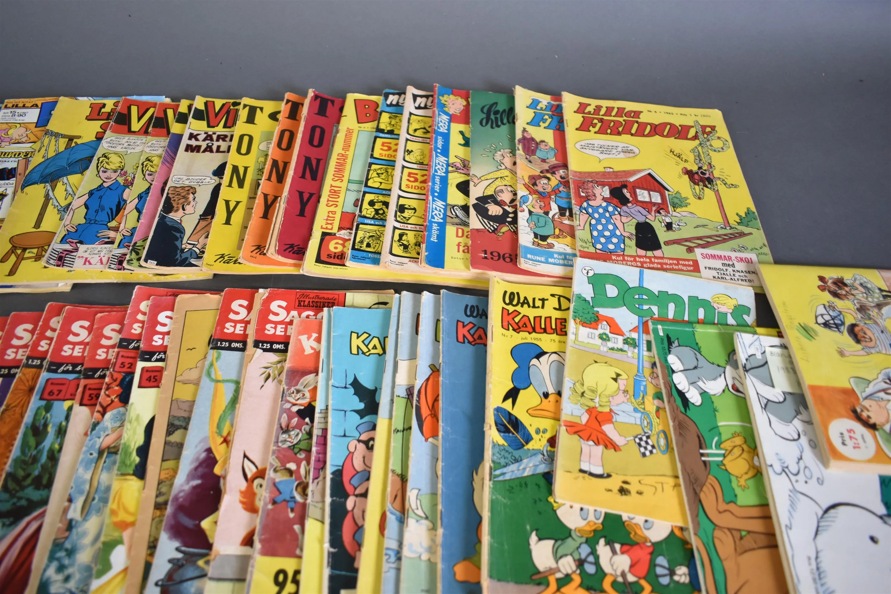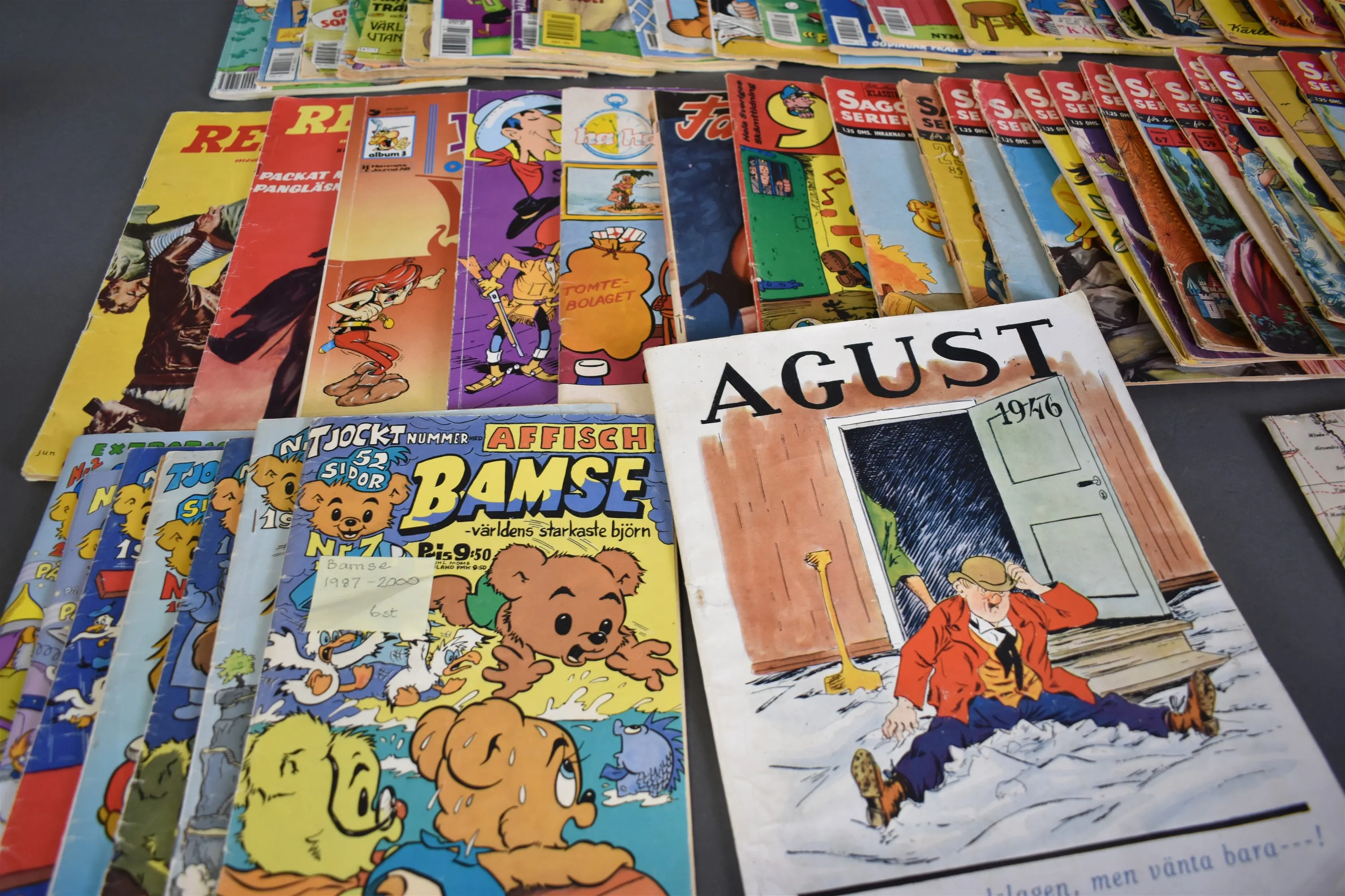 15667. Parti serietidningar bla Sagoserien & Fridolf 1946 och karta över Abessinien & Somaliländer