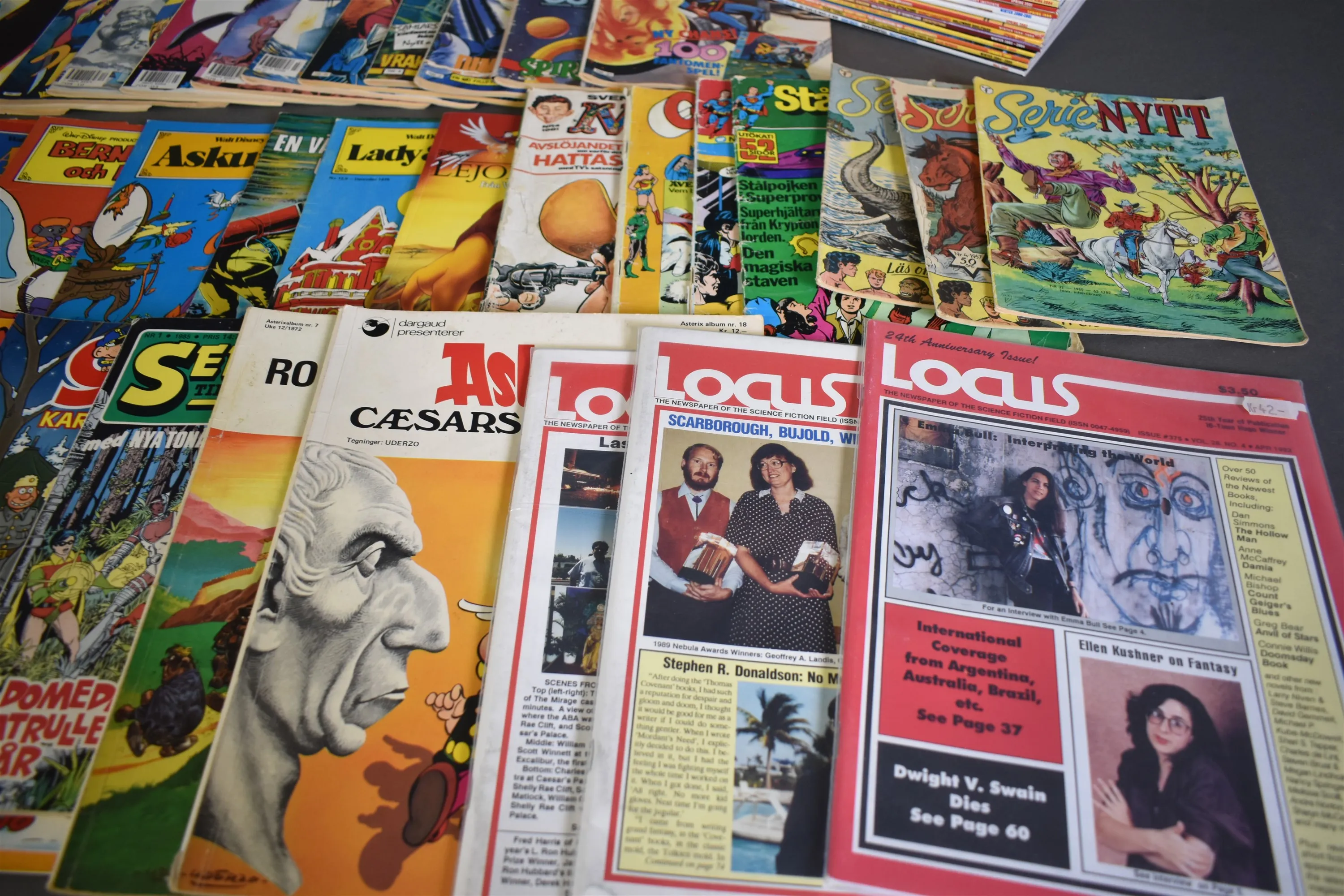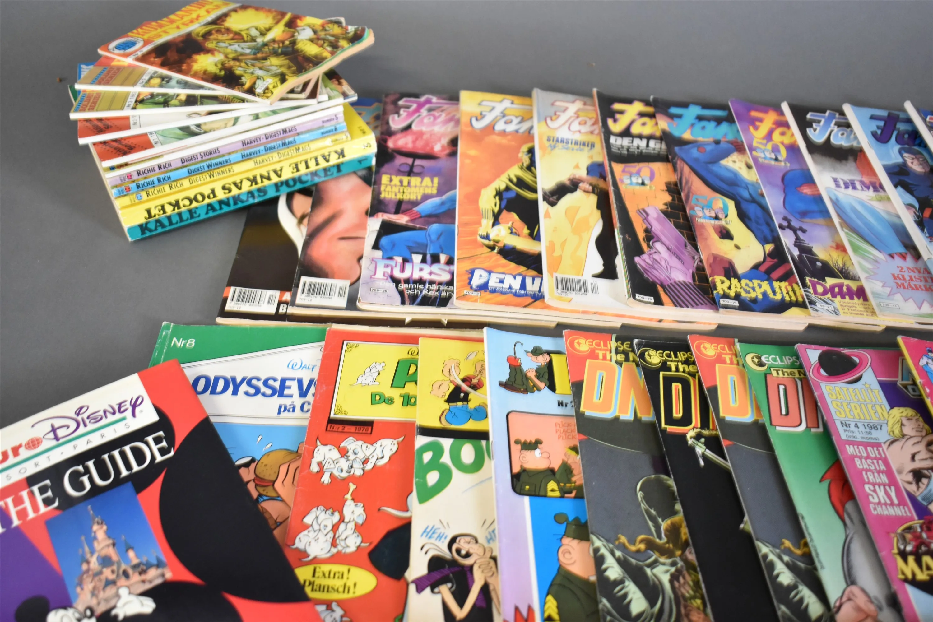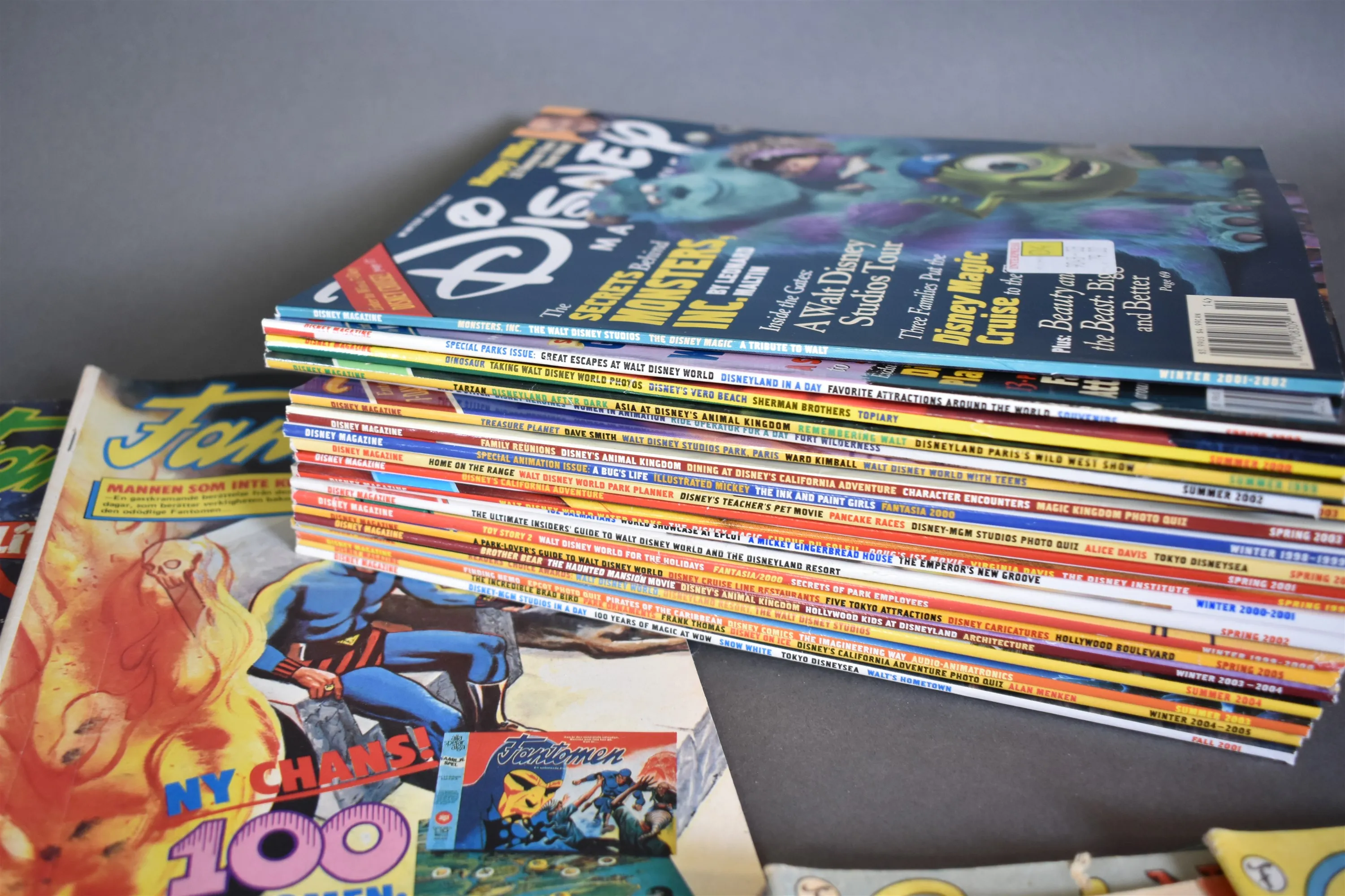15071. Parti serietidningar och tidsskrifter bla Disney Magazine, Fantomen och Asterix