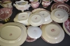 5534. Parti servisdelar, bl.a Gustavsberg & England, röd dekor, längsta 30 cm
