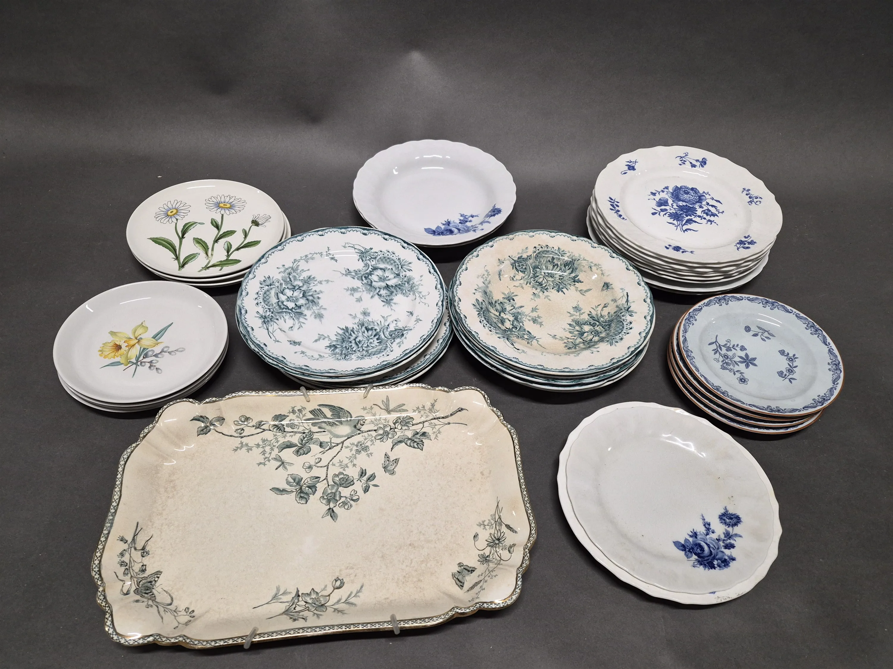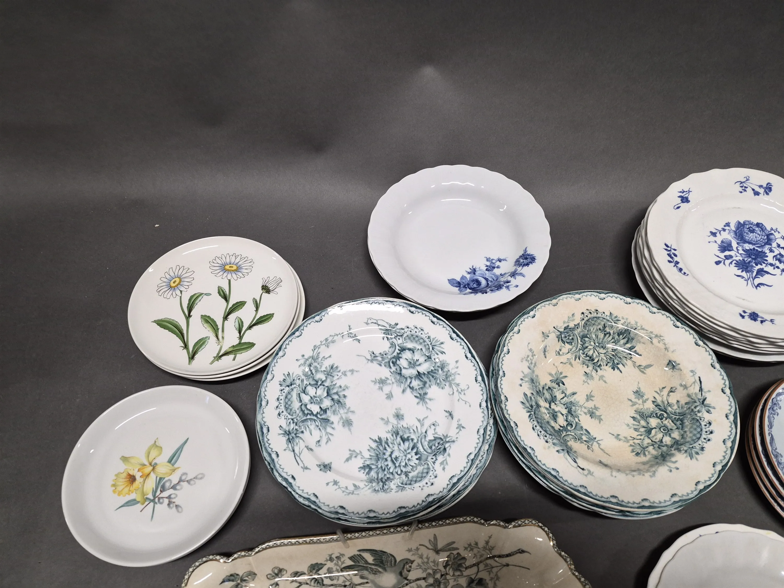 18280. Parti servisdelar, Gröna Anna, Ostindia & Flora Rörstrand längsta 39 cm