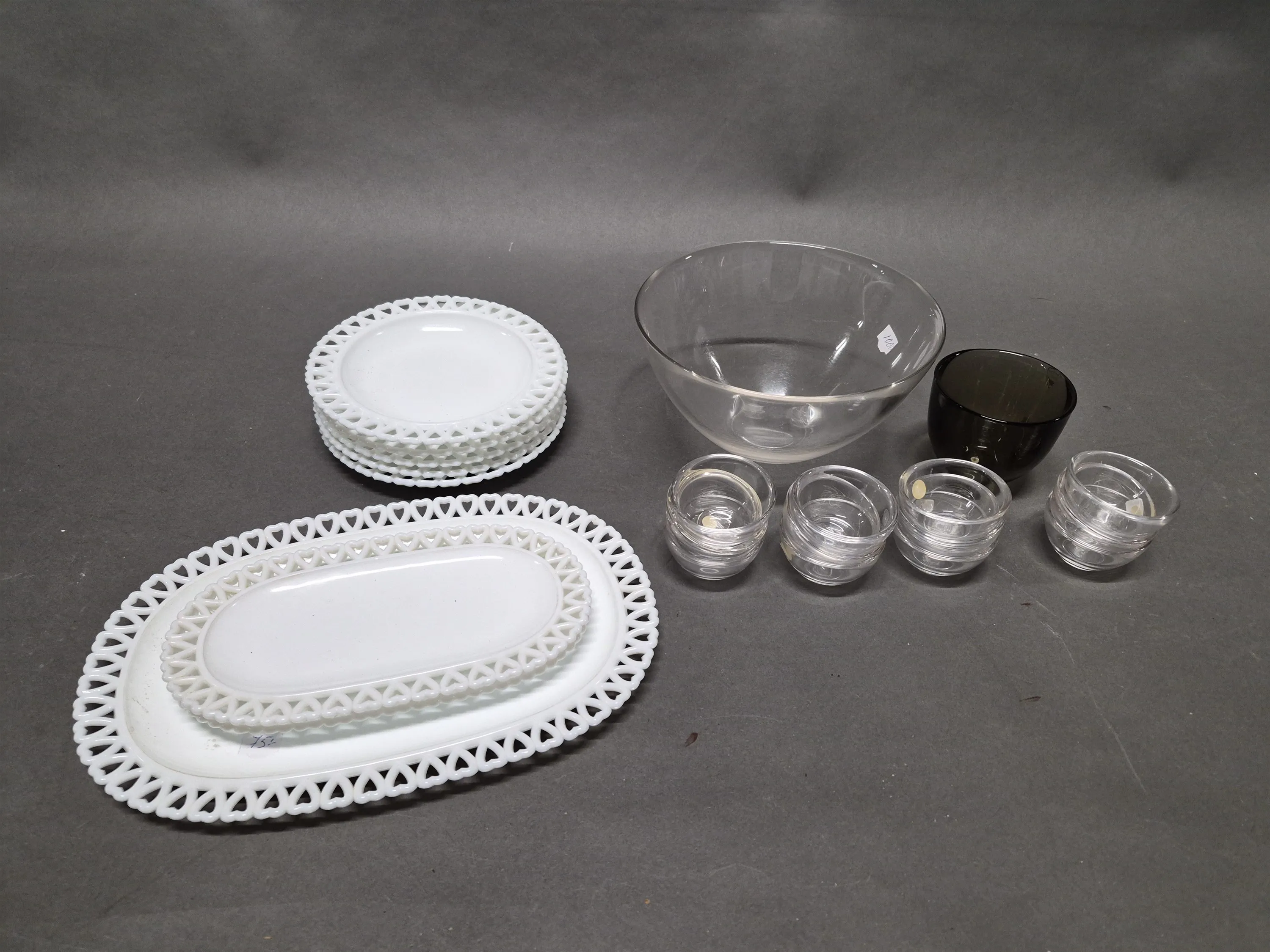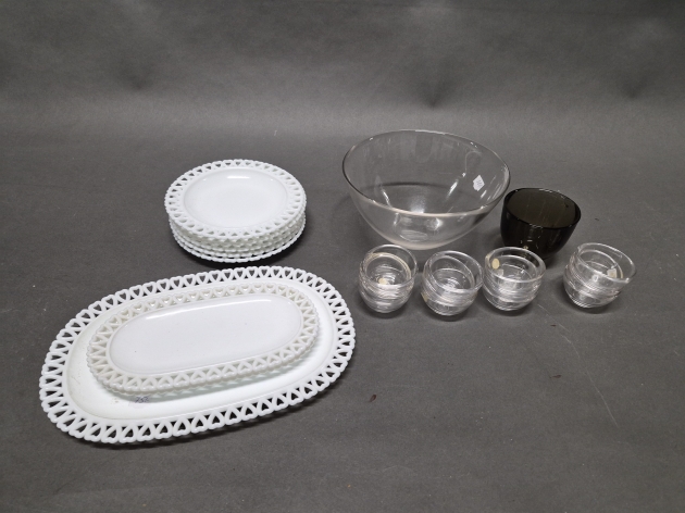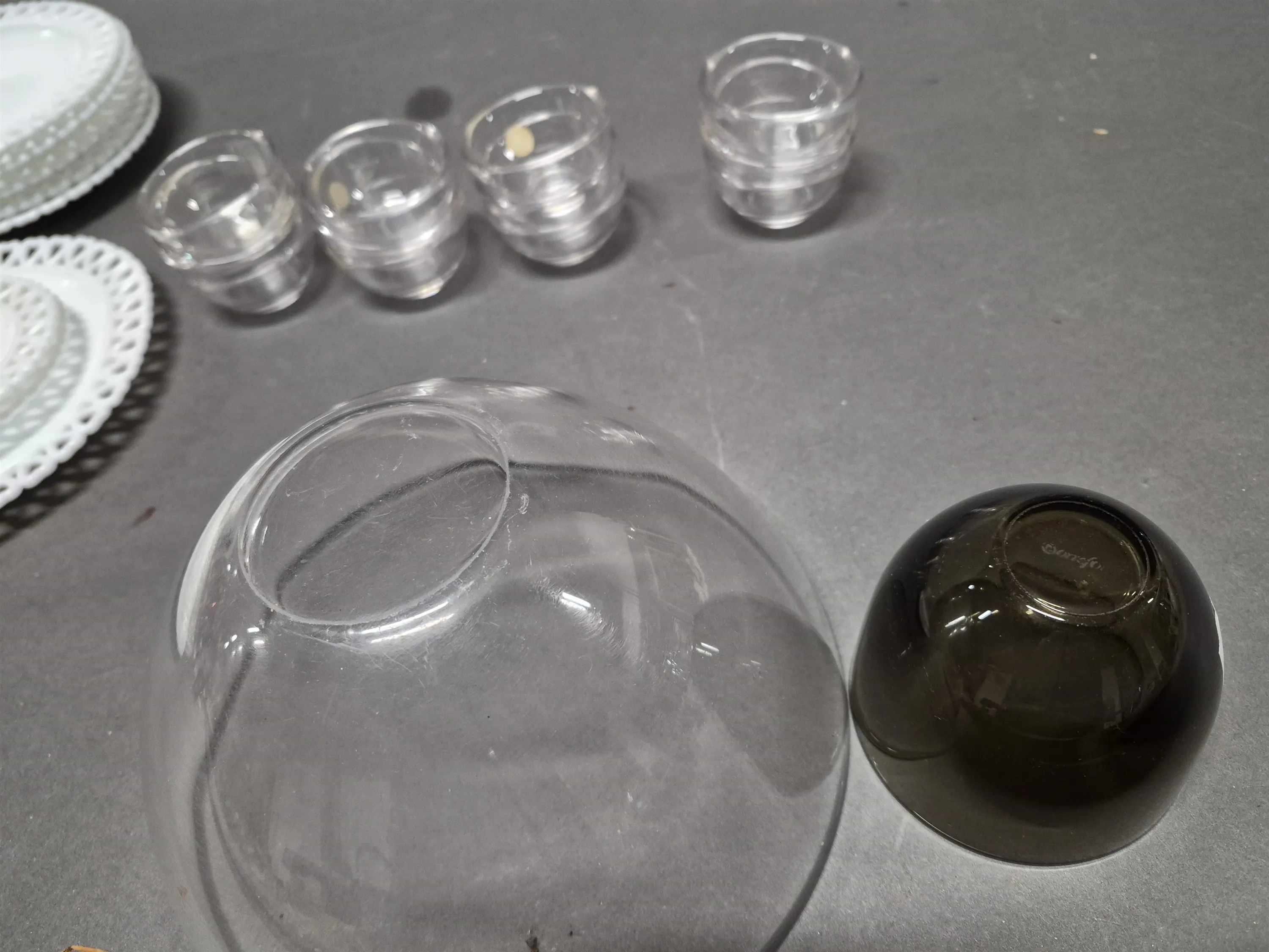 17684. Parti servisdelar, Gunnar Ander Lindshammar & Skålar Fuga Orrefors längsta 32 cm