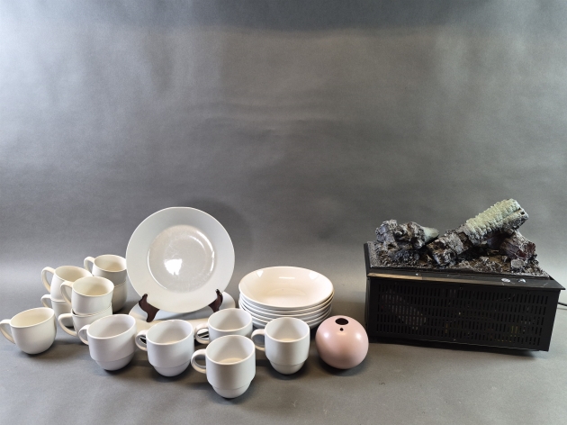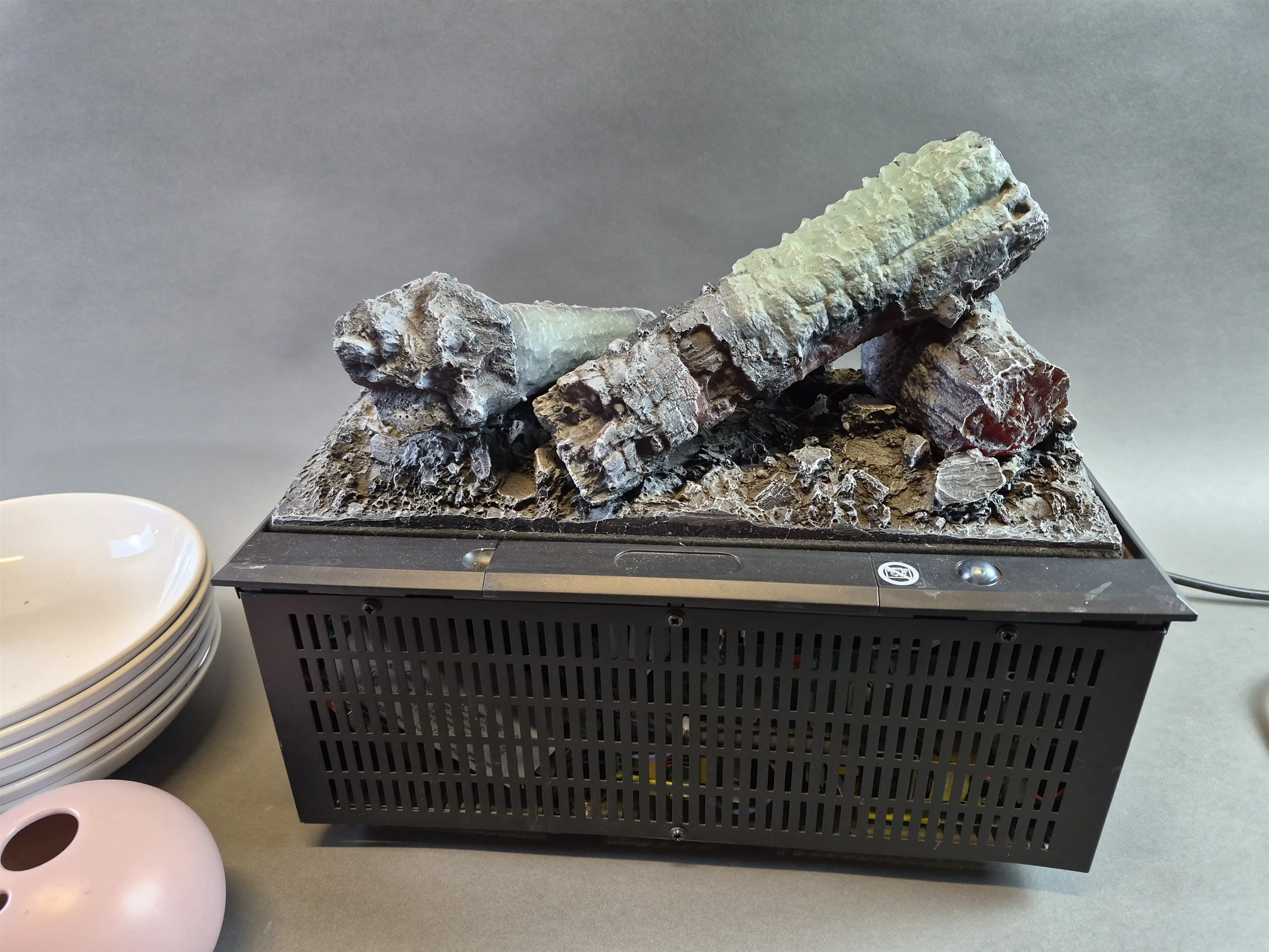 19766. Parti servisdelar och elektrisk kamin, längd på kamin 41 cm