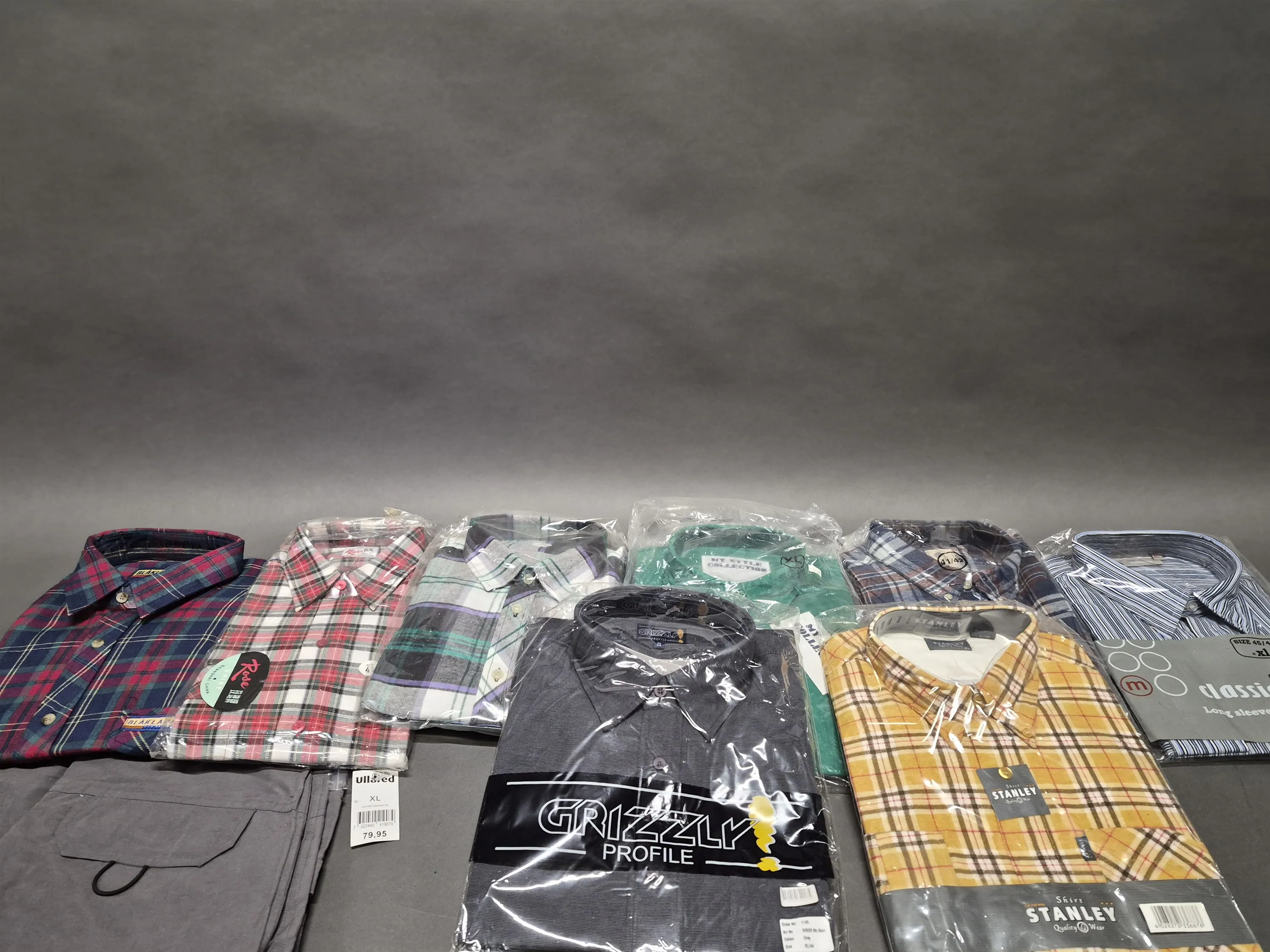 18183. Parti shorts och skjortor strl XL bla Blåkläder, oanvänt