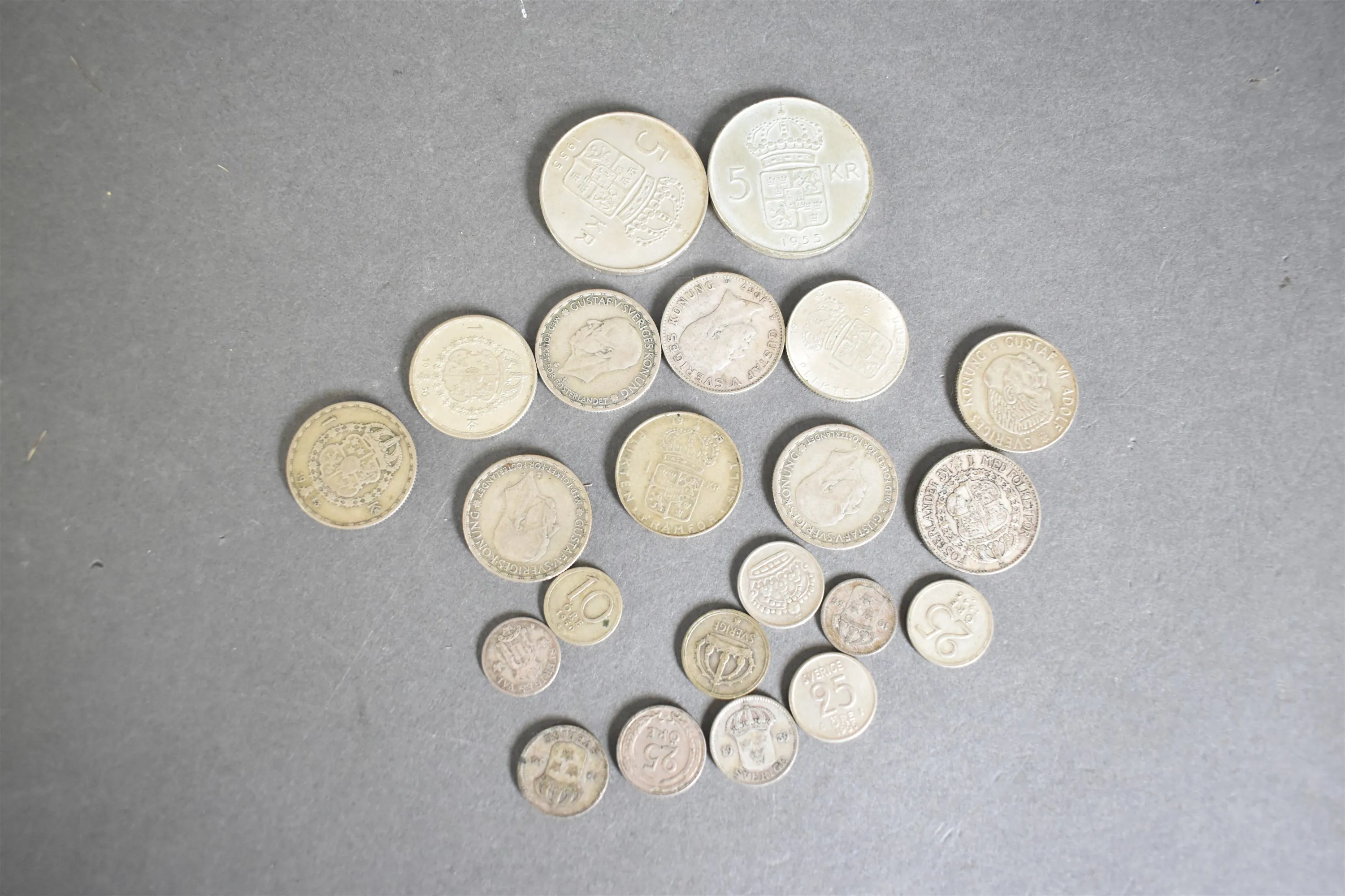 12229. Parti silvermynt 10 öre, 25 öre, 1 kronor och 5 kronor, varierande årtal