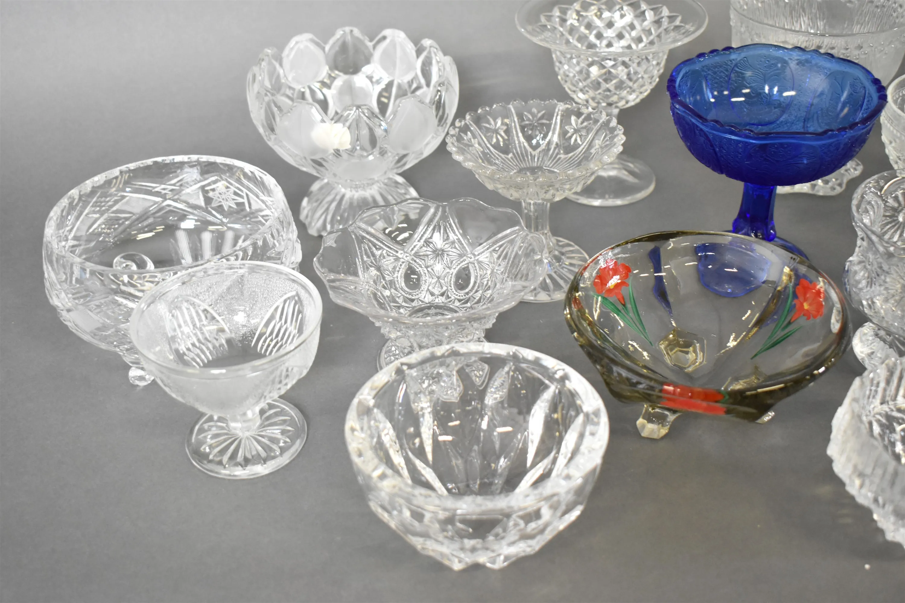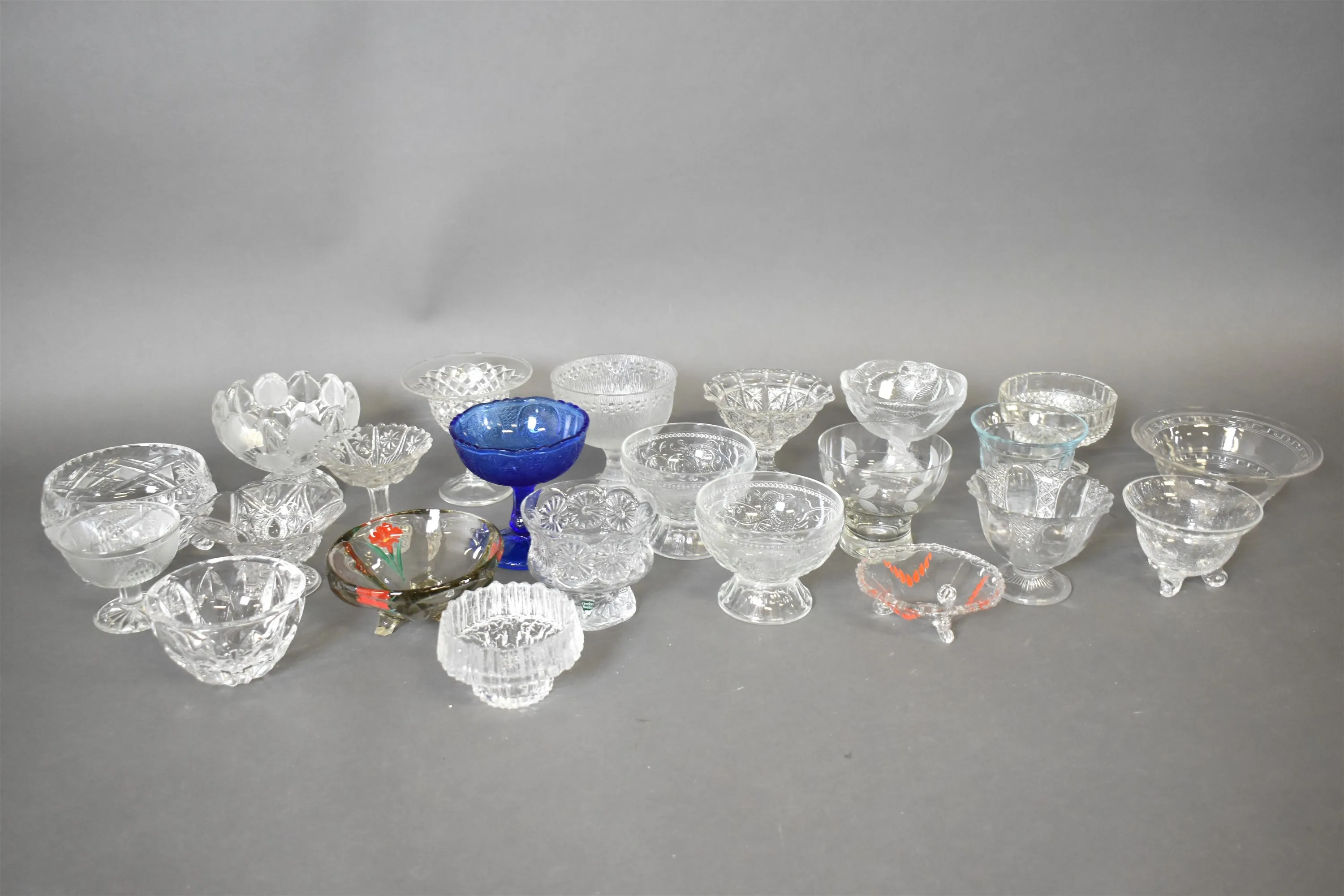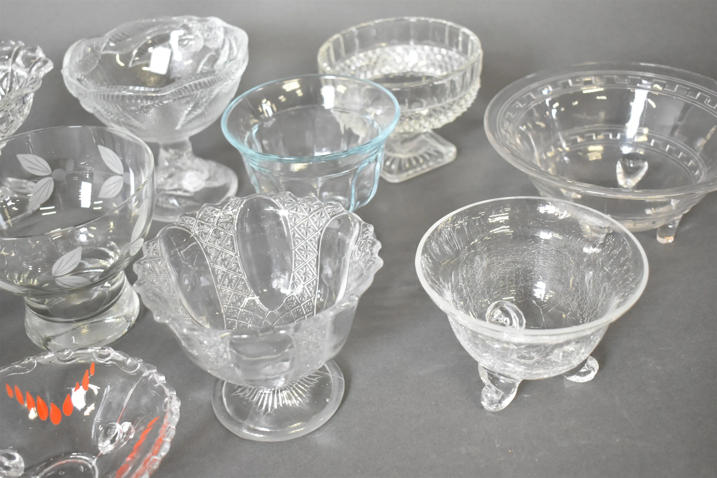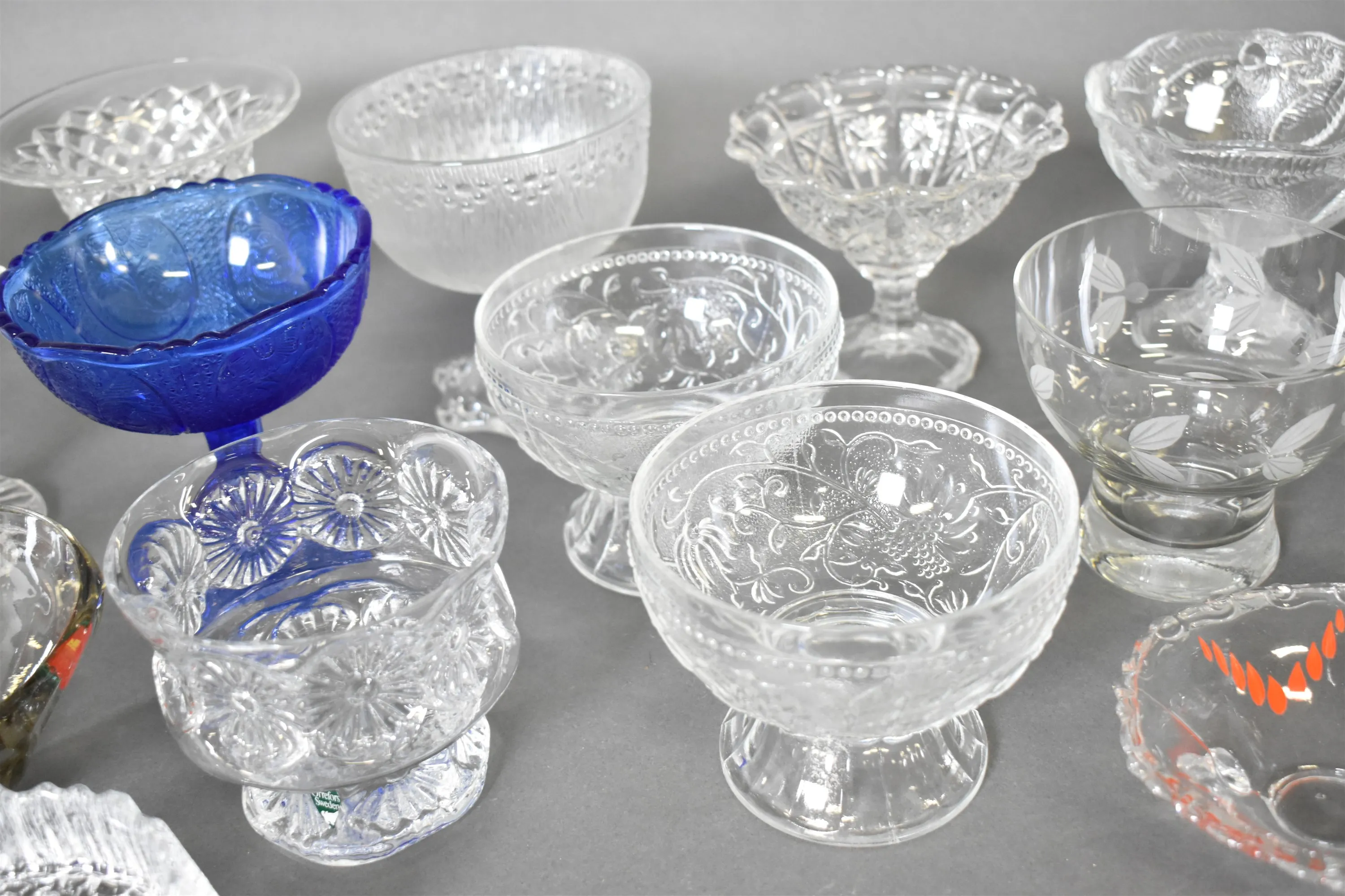 12695. Parti skålar på fot, glas, högsta höjd 13 cm