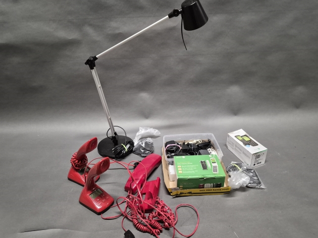 17195. Parti skrivbordslampa, teknik, telefoner högsta 50 cm